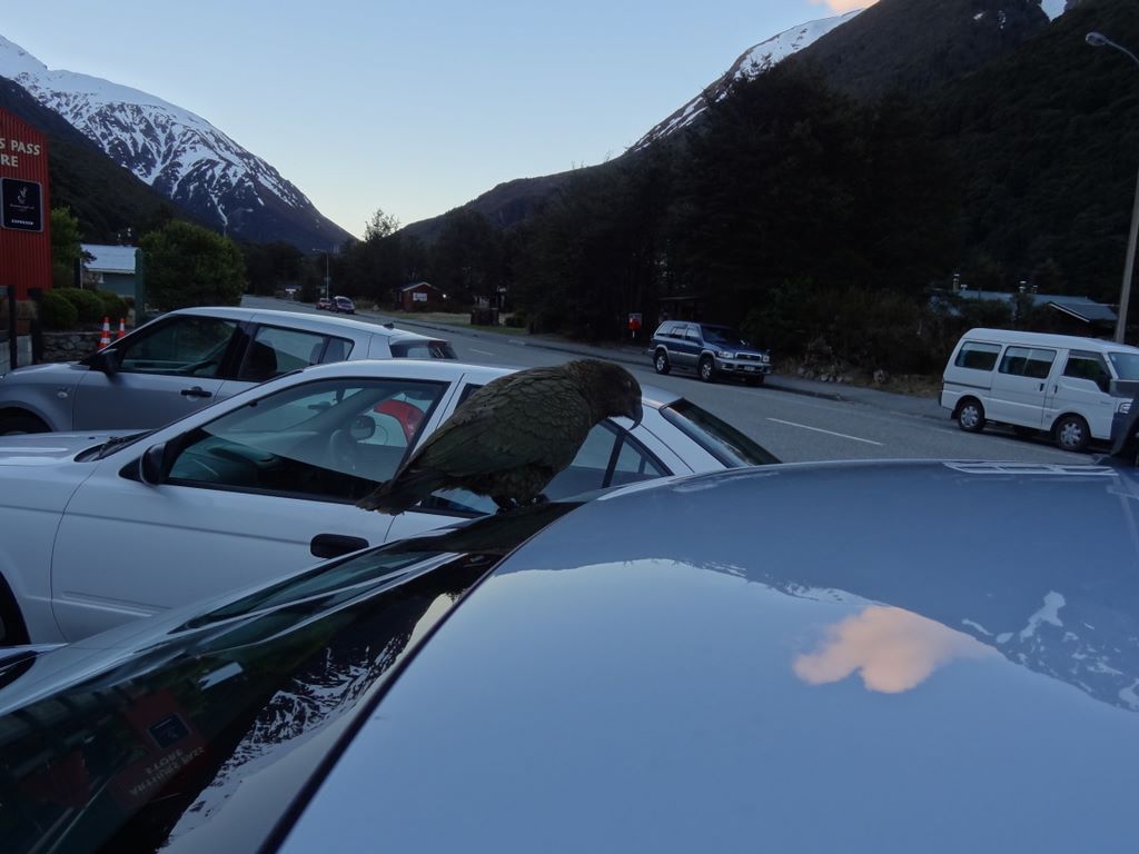 61. Dimanche matin. Nous quittons Arthur's Pass et ses keas.