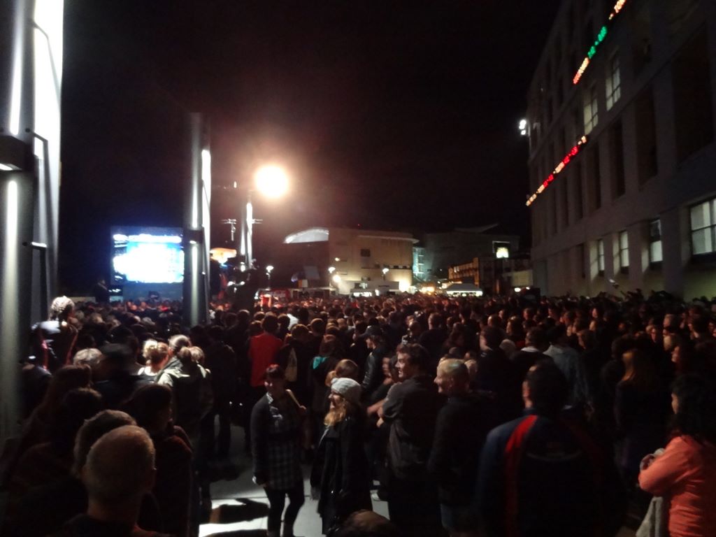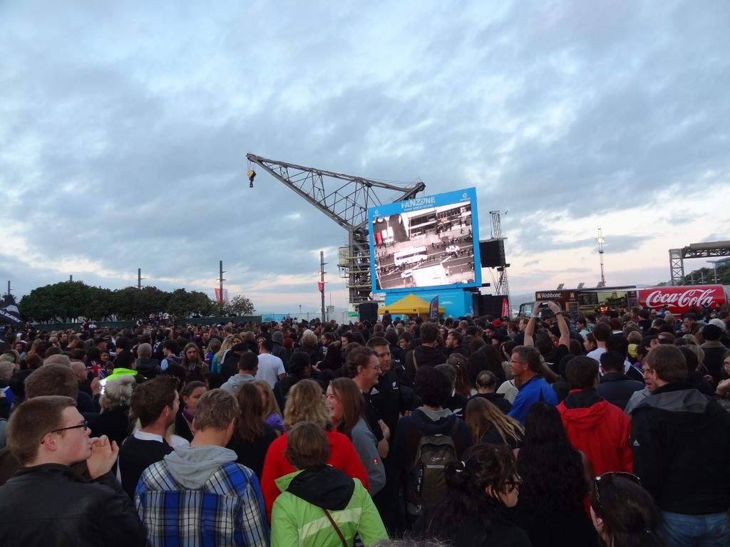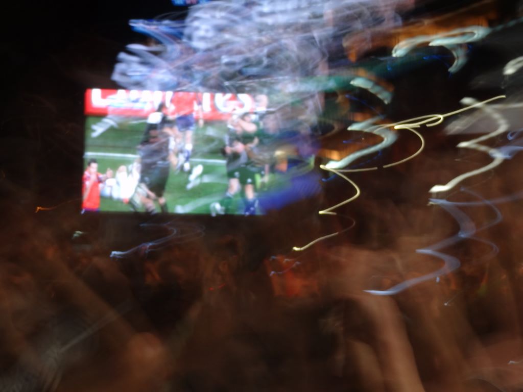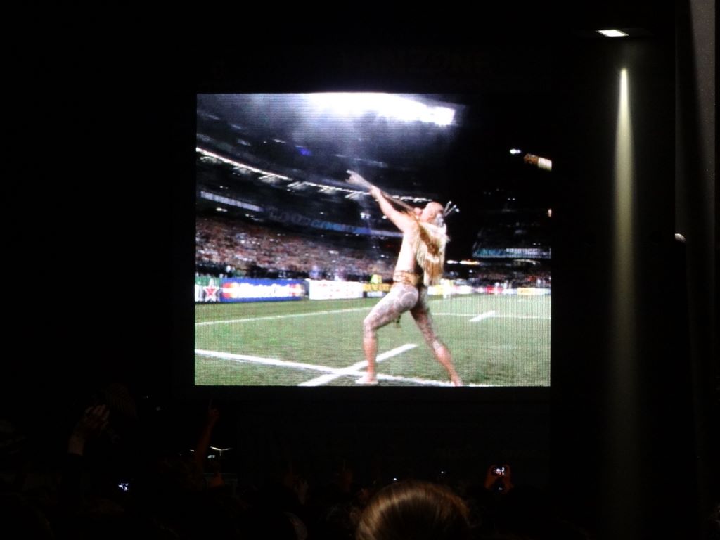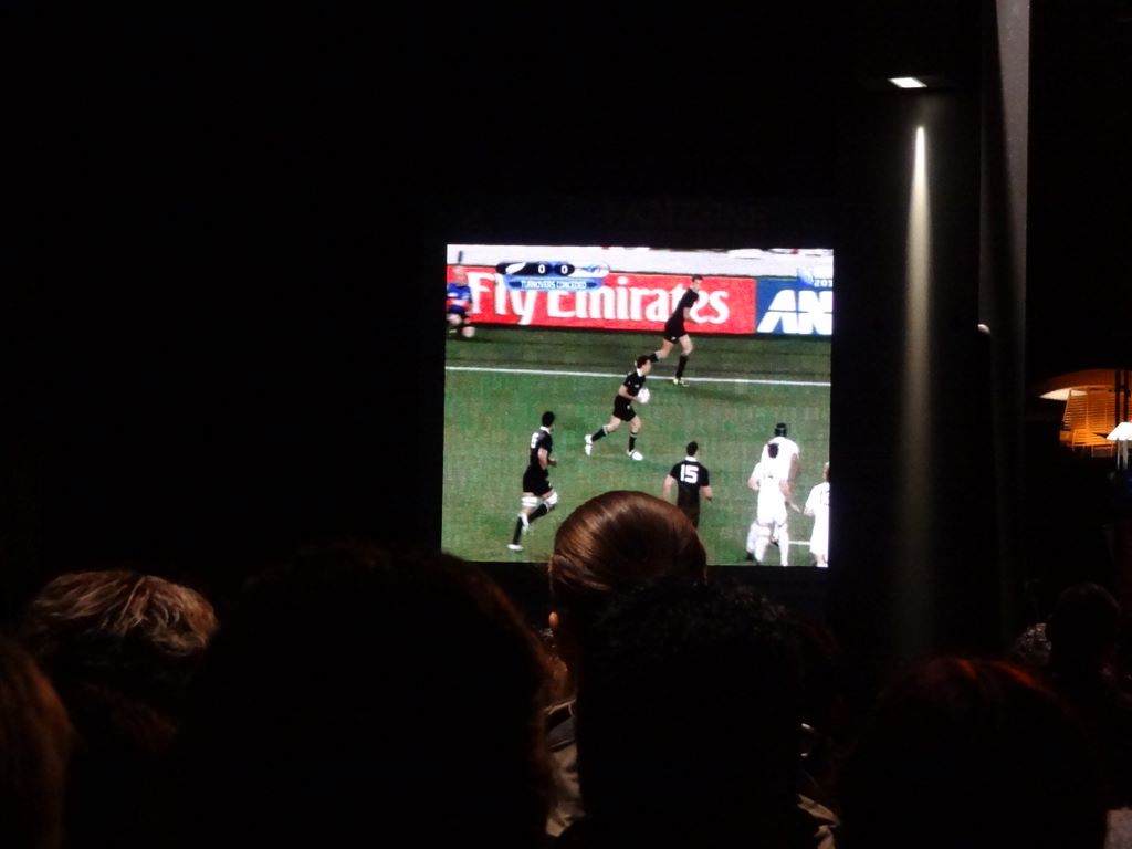 5. Le match doit démarrer dans 2 heures, mais déjà, l'écran géant retransmets les images des équipes arrivant à l'Eden Park.