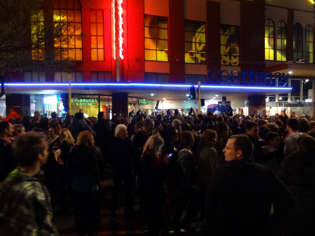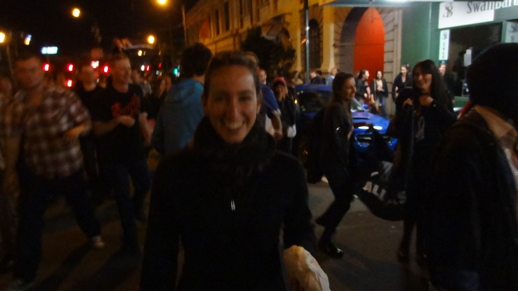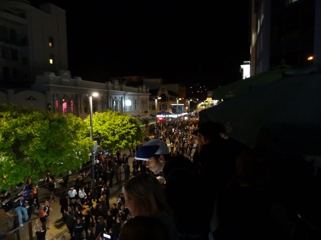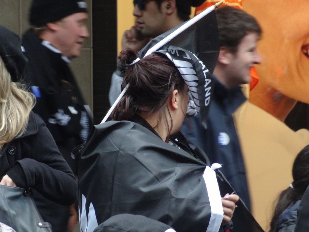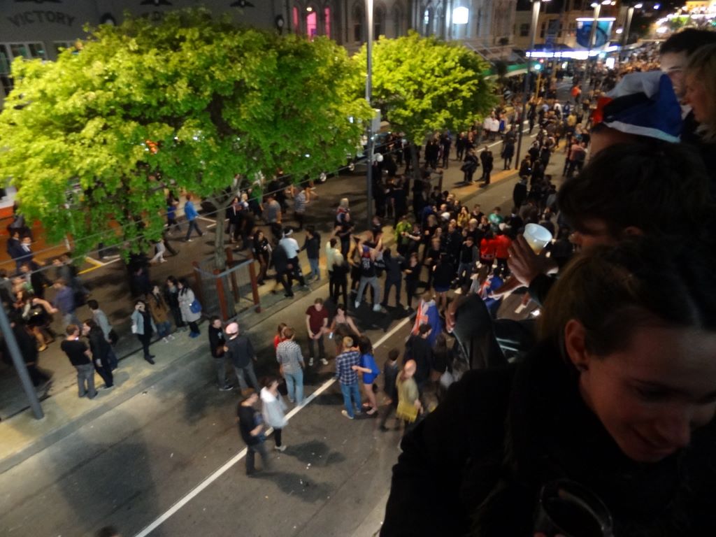 20. Une fois la cérémonie de cloture terminée, la foule se dirige vers Courtenay Place. Ici, Pauline, qui soutenait les Blacks, est ravie!