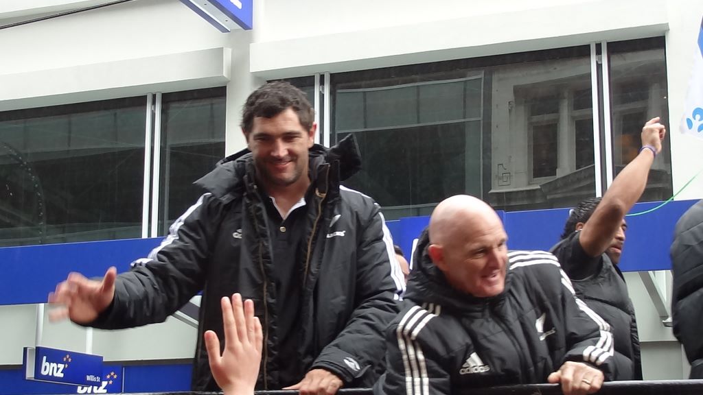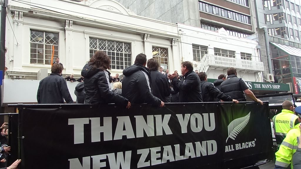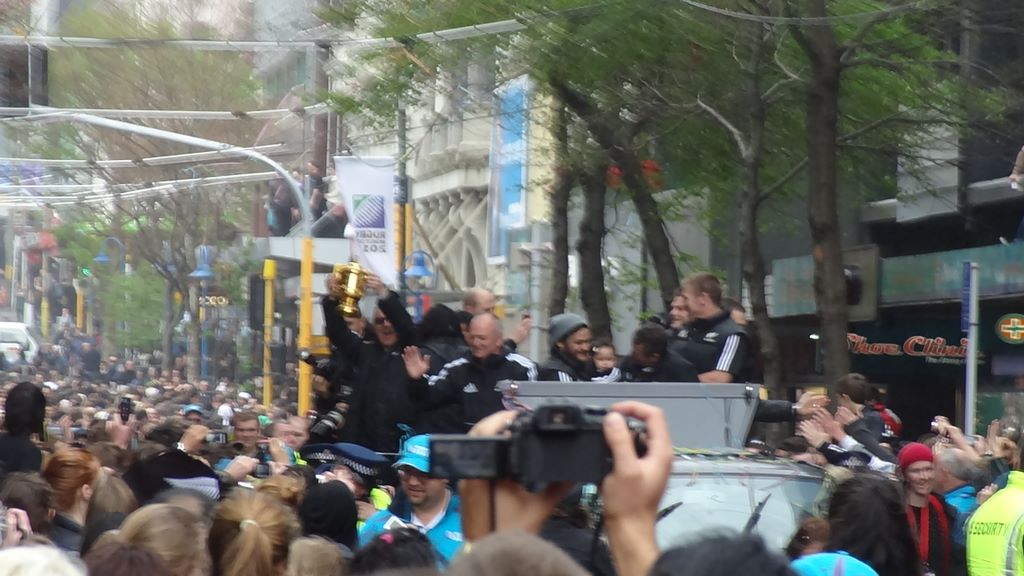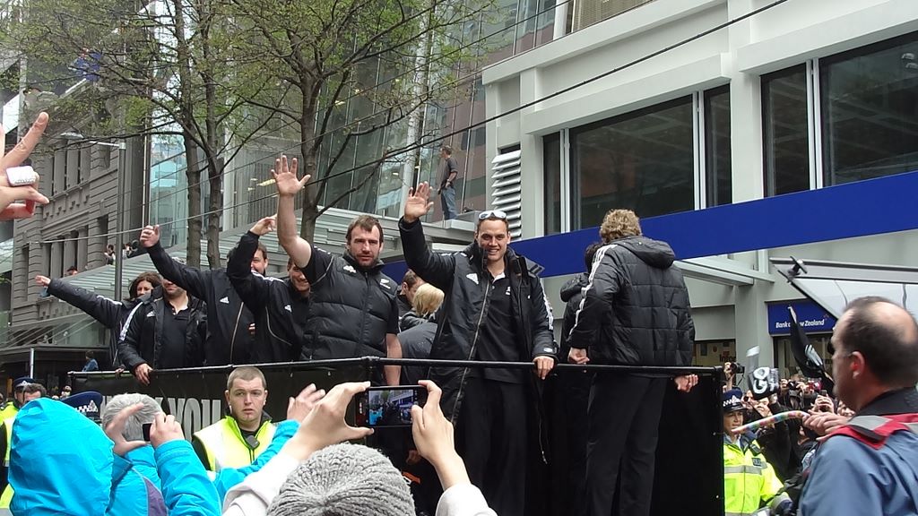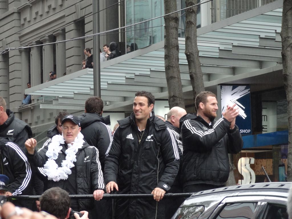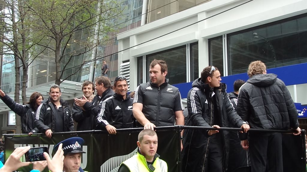 52. Graham. Derrière lui, Richie et Brad. Immense respect pour lui, son équipe, immense bonheur pour moi d'avoir vécu cette coupe du monde ici, en Nouvelle Zélande, et d'avoir pu assister à ce défilé.