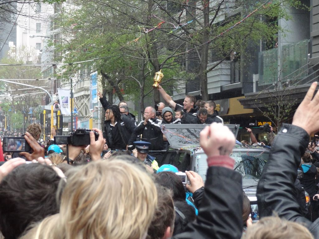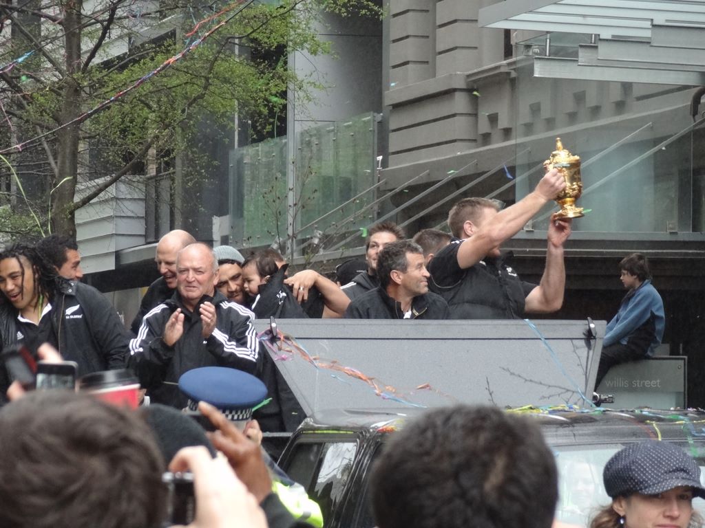 46. Arrive le dernier char ... celui avec la coupe! On voit ici Graham Henry, avec Piri Weepu à sa gauche (encore un local).
