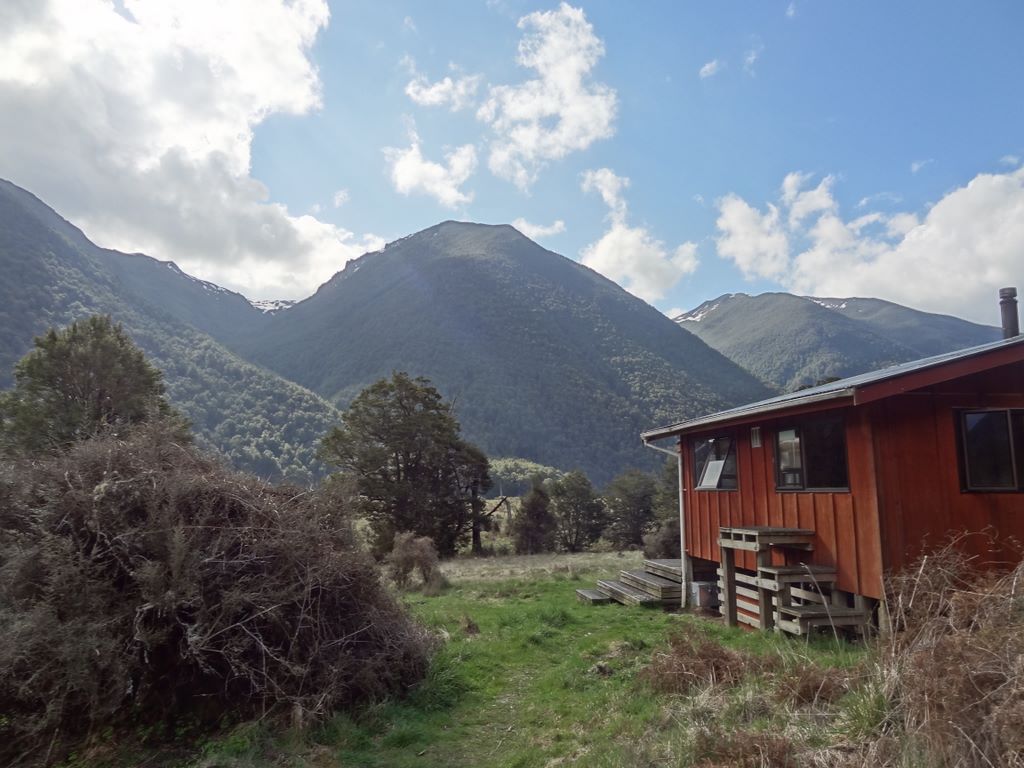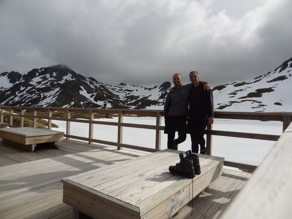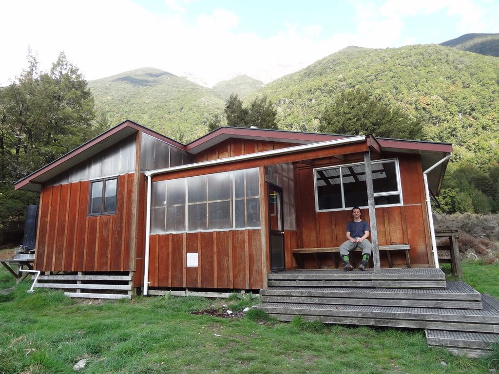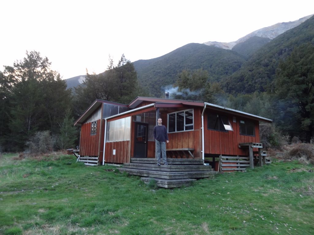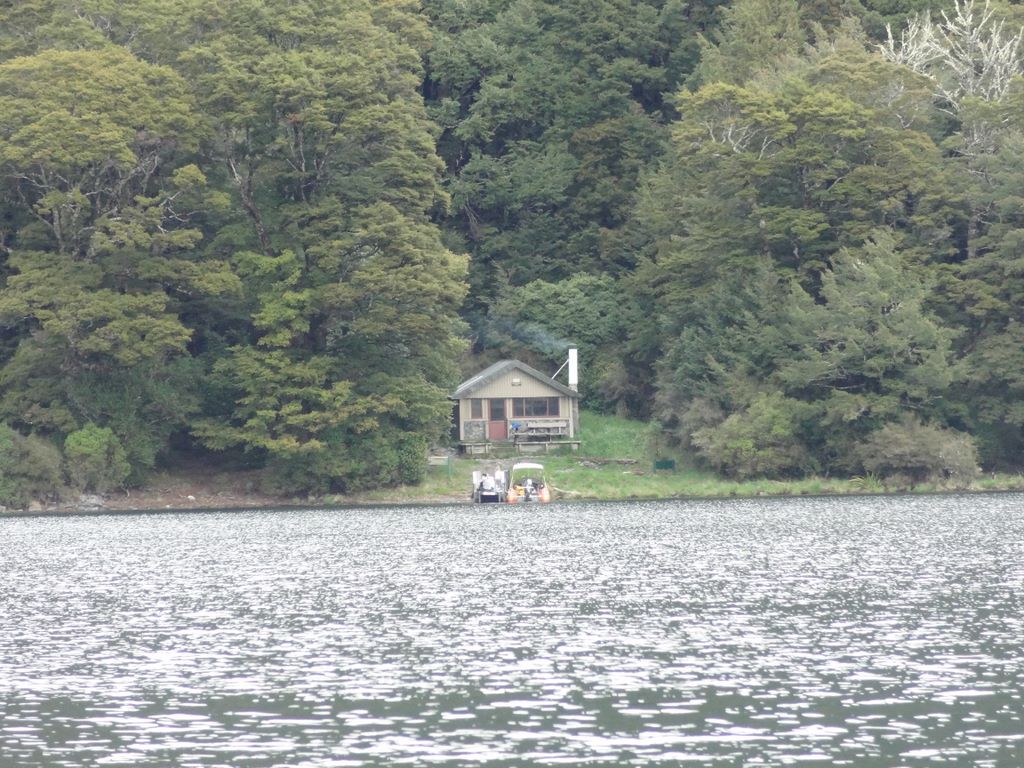 55. Il est 17h, et nous avons rejoint le lac Angelus, à côté duquel se trouve le refuge éponyme, l'Angelus Hut.