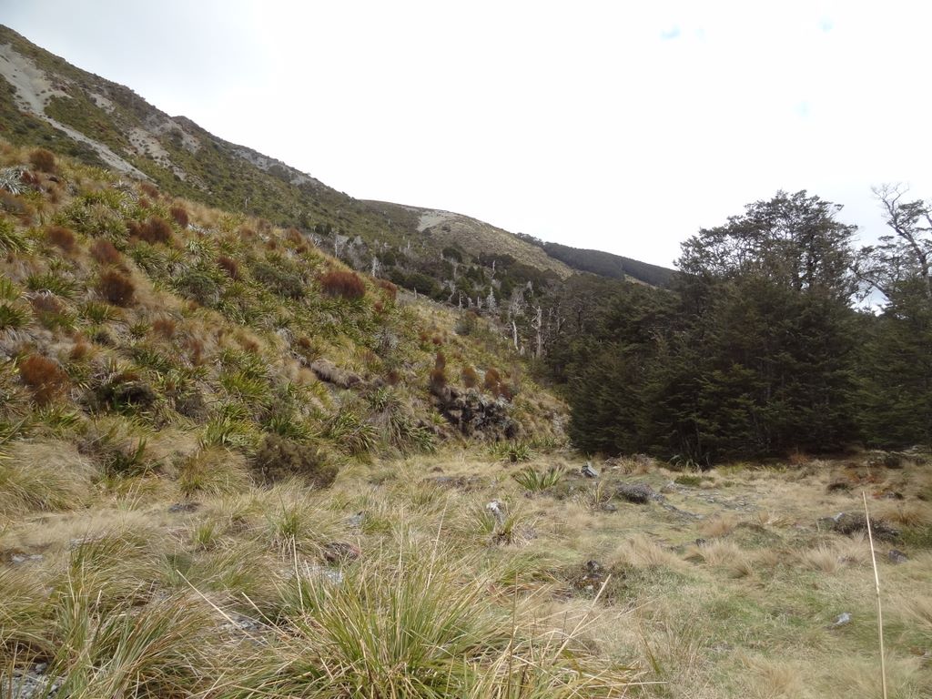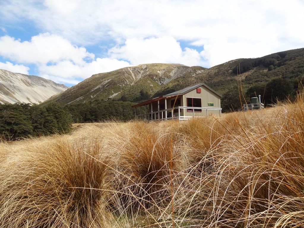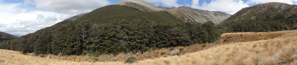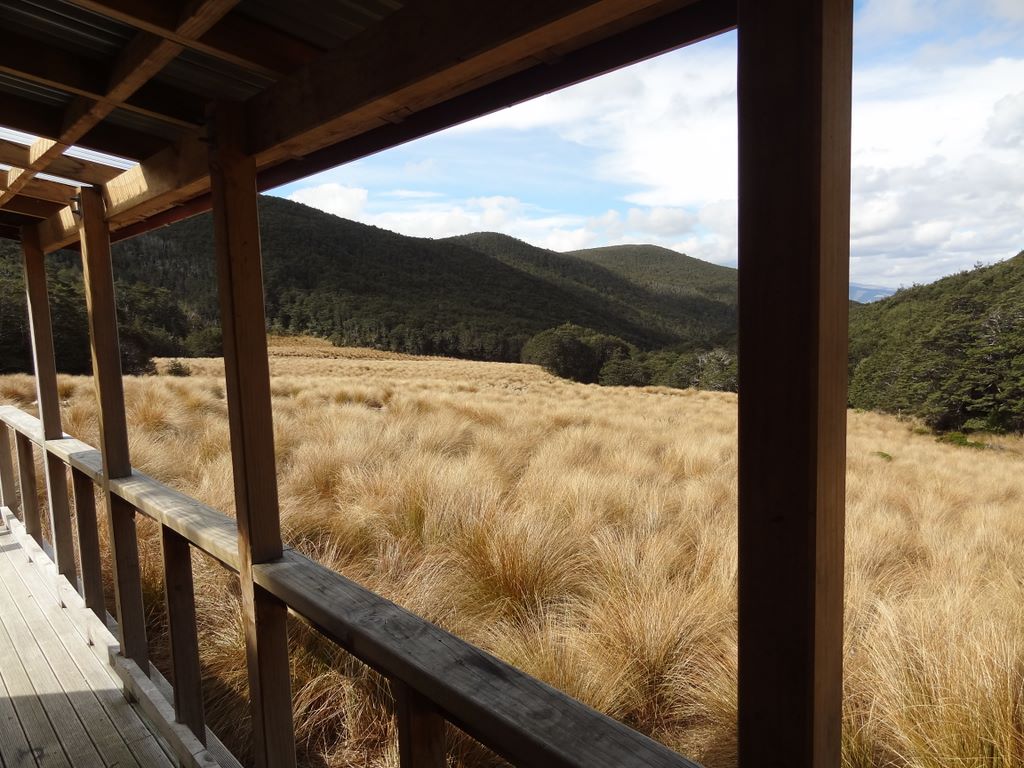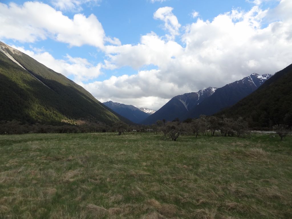 92. En bas, nous avons rejoint la Speargrass hut. J'étais aussi passé par ce refuge, il y a 5 ans, mais en arrivant par la vallée Sabine. Le champ de speargrass est toujours aussi magnifique.