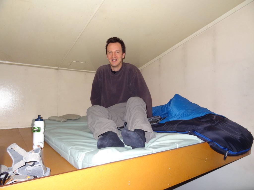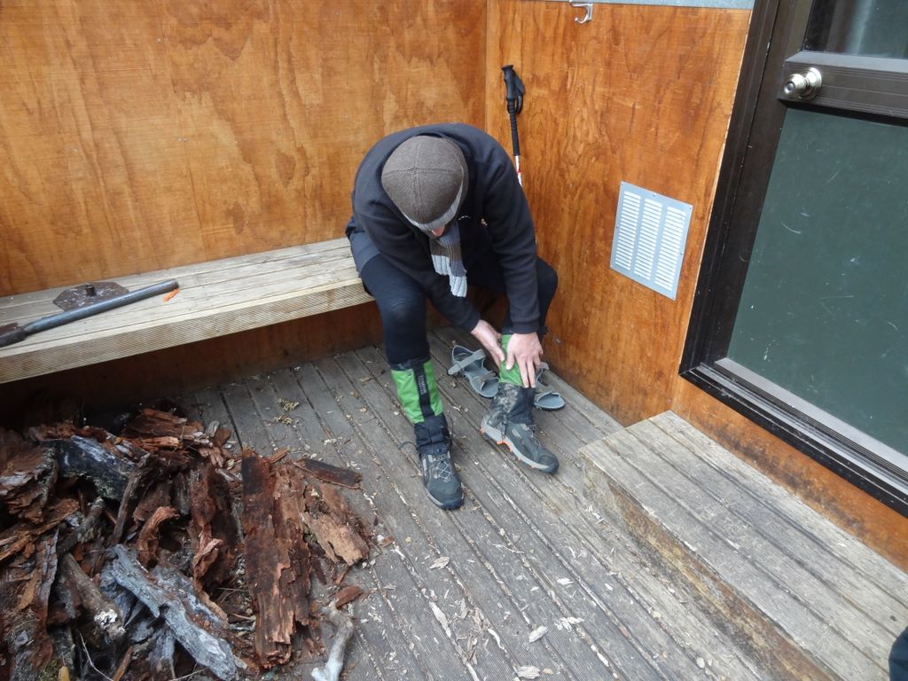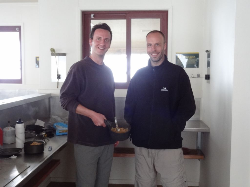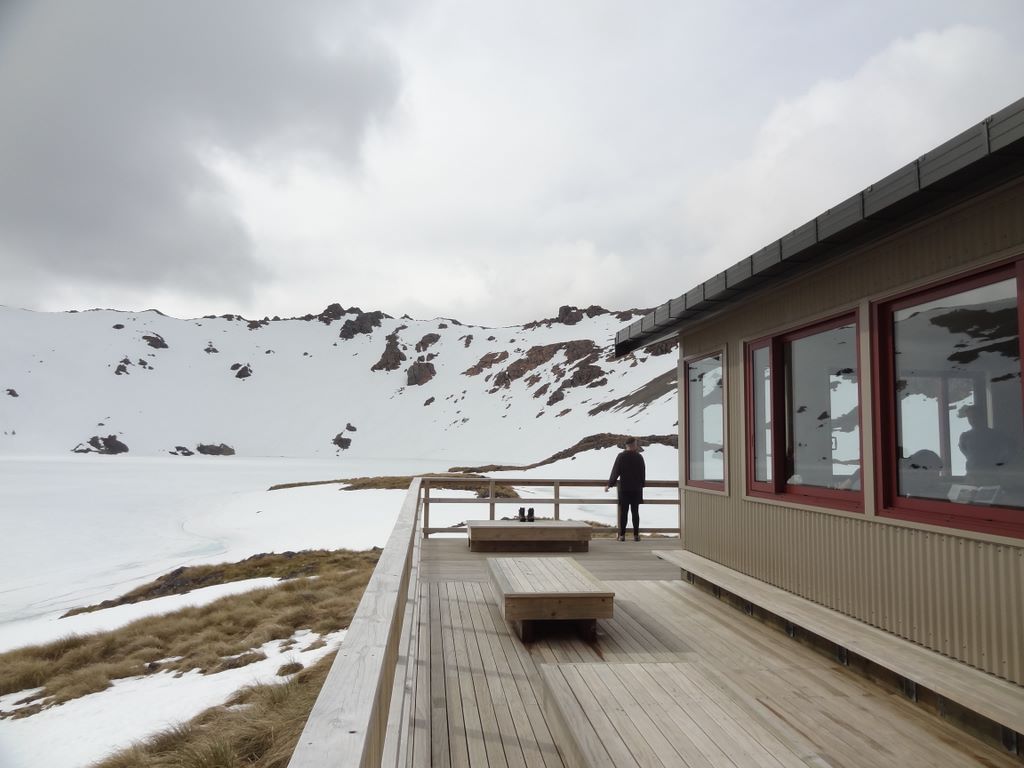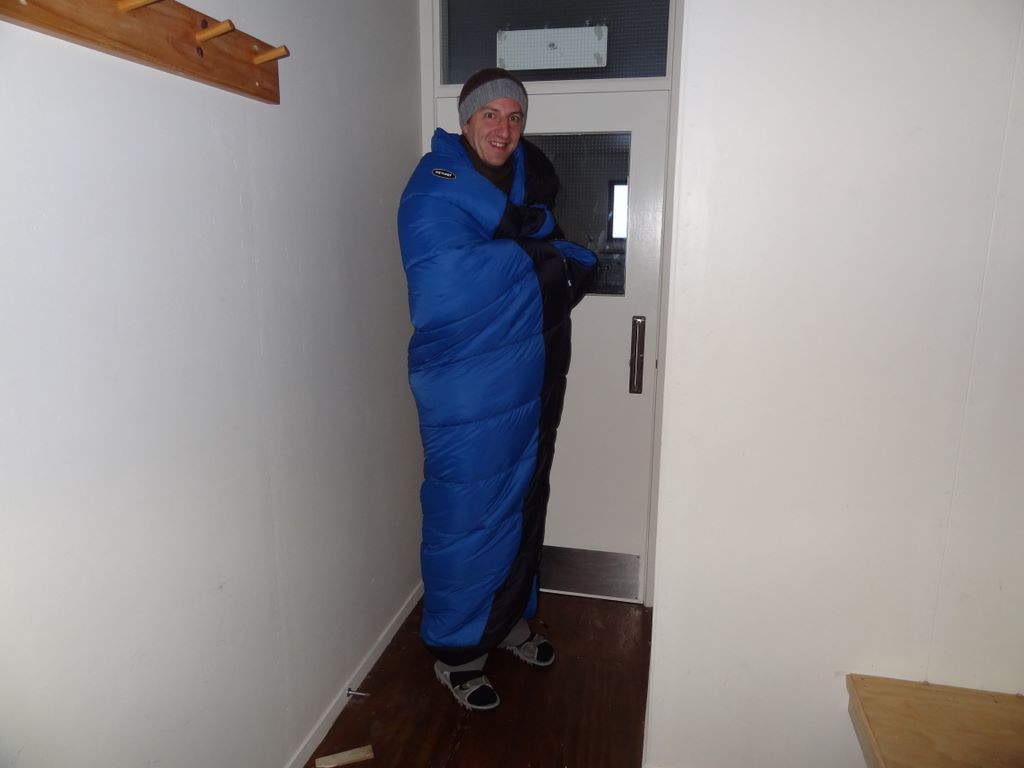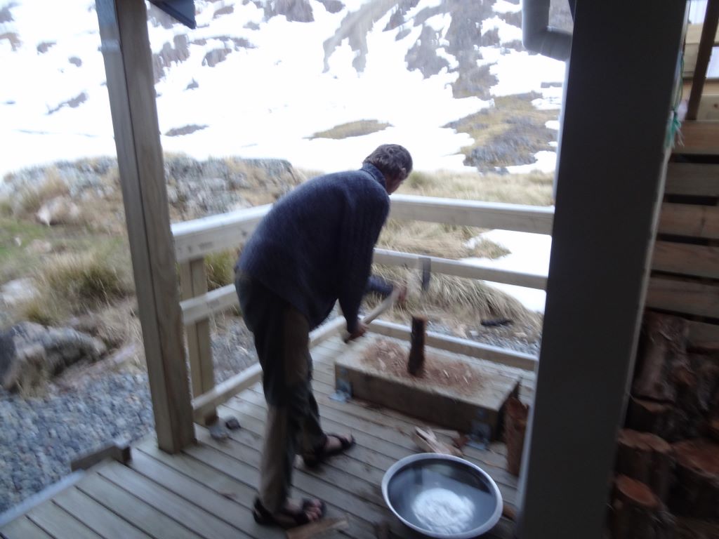 62. Petit problème toutefois: nous n'avions pas prévu que les cuves d'eau de pluie du refuge seraient fermées (pour cause de gel). Du coup, pour la toilette et pour la cuisine, on fera ça dans le lac, dans un trou d'eau. Oui, c'est TRES courageux!