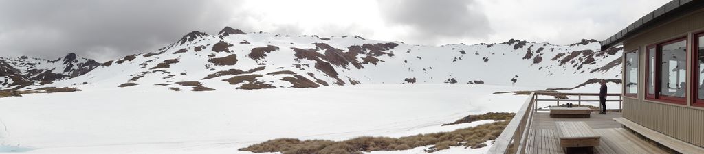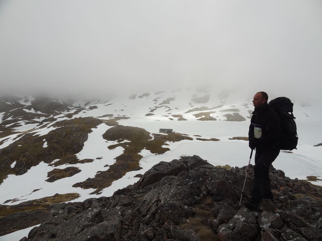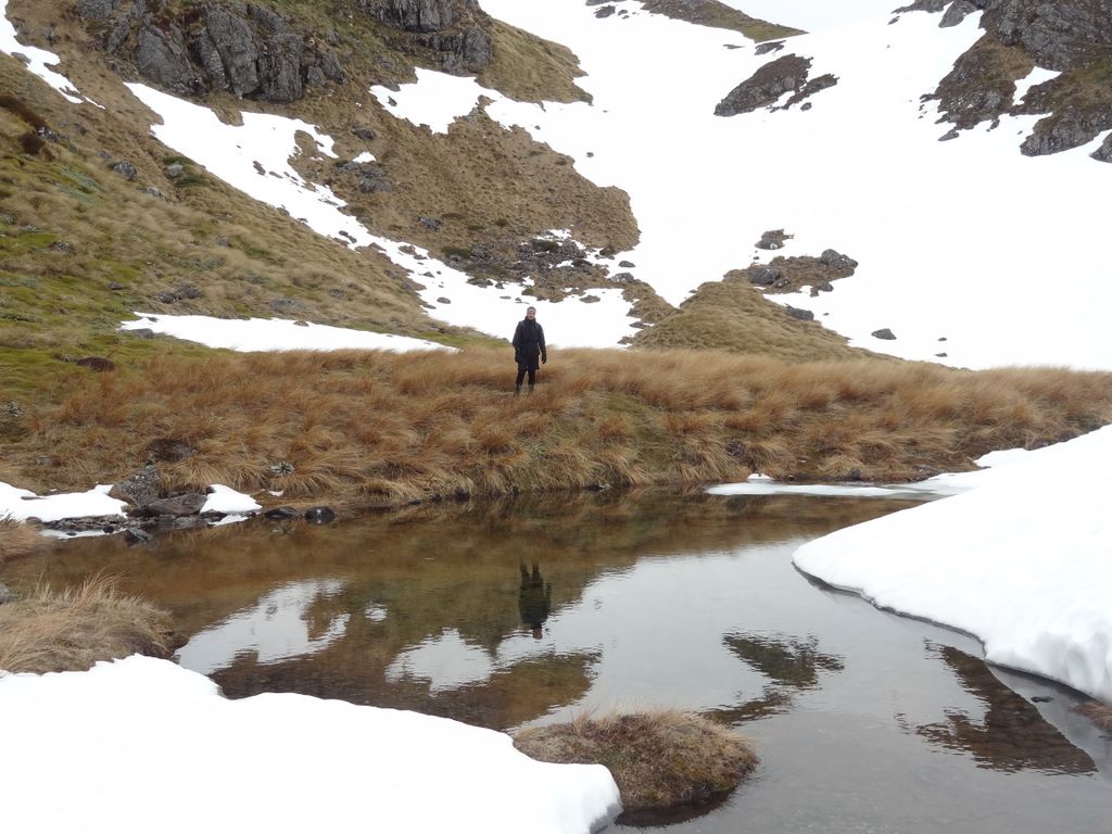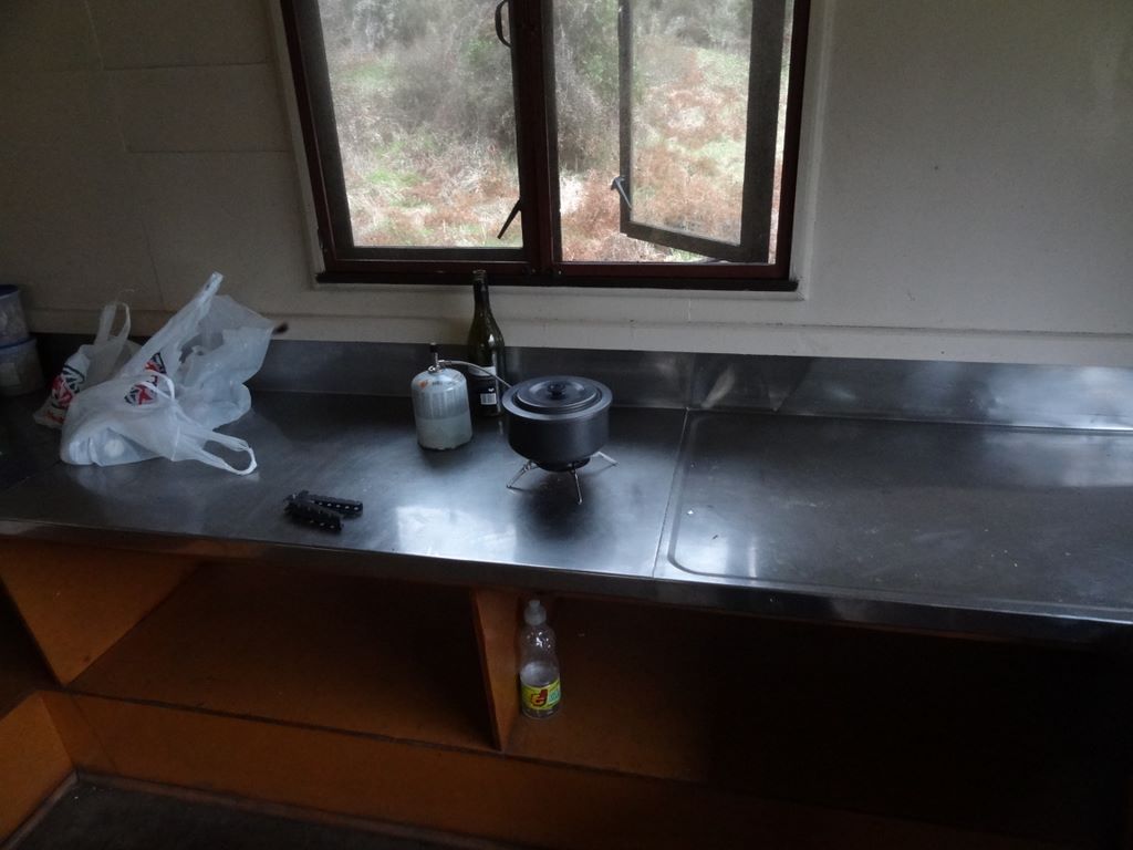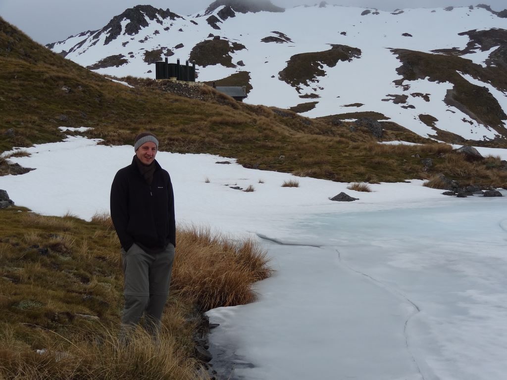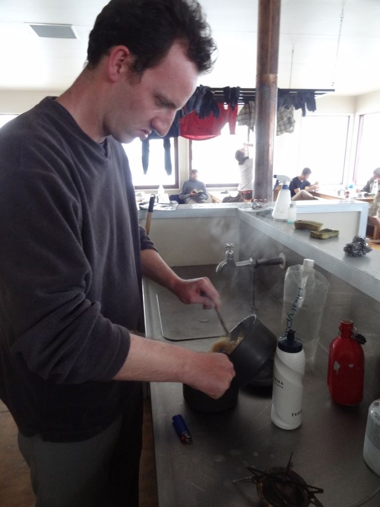 62. Petit problème toutefois: nous n'avions pas prévu que les cuves d'eau de pluie du refuge seraient fermées (pour cause de gel). Du coup, pour la toilette et pour la cuisine, on fera ça dans le lac, dans un trou d'eau. Oui, c'est TRES courageux!