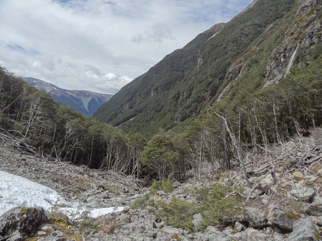 44. .... et nous avions perdu en tout une vingtaine de minutes à revenir sur nos pas et repartir vers le Sud, à gauche de cette photo. Aujourd'hui, Nico et moi allonrs remonter vers le Nord, à droite, rejoindre la vallée et entamer l'escalade du col.