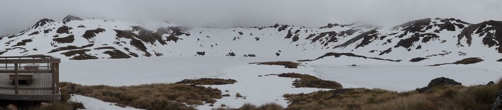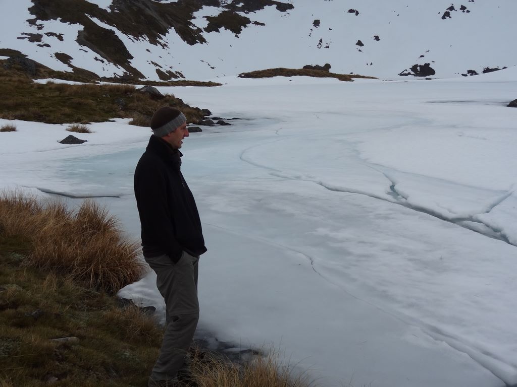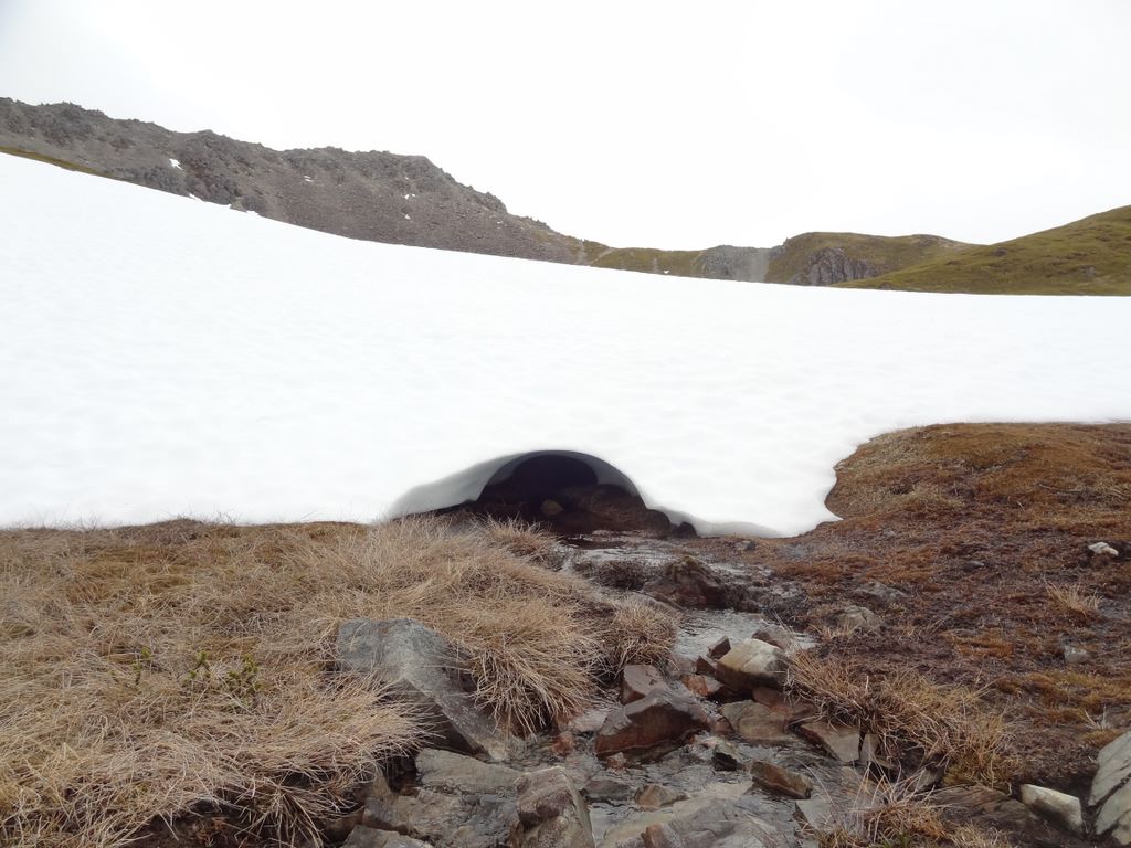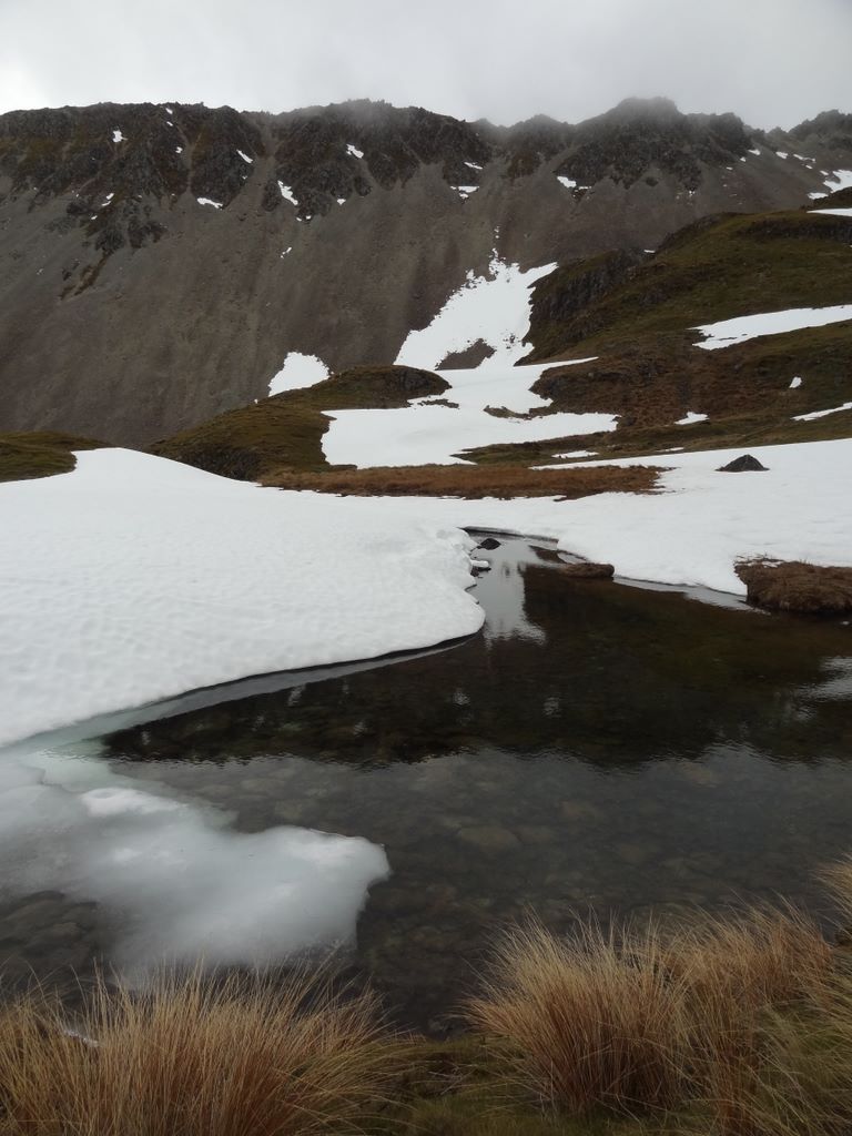 56. Le lac est situé juste à côté du col et est encore gelé.