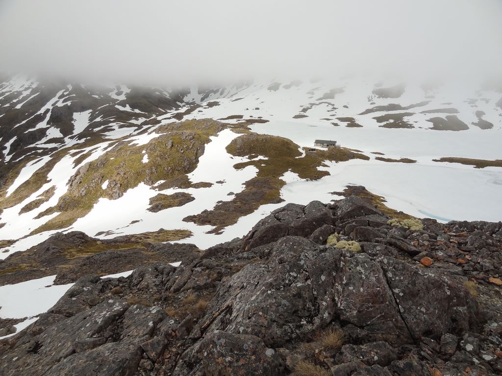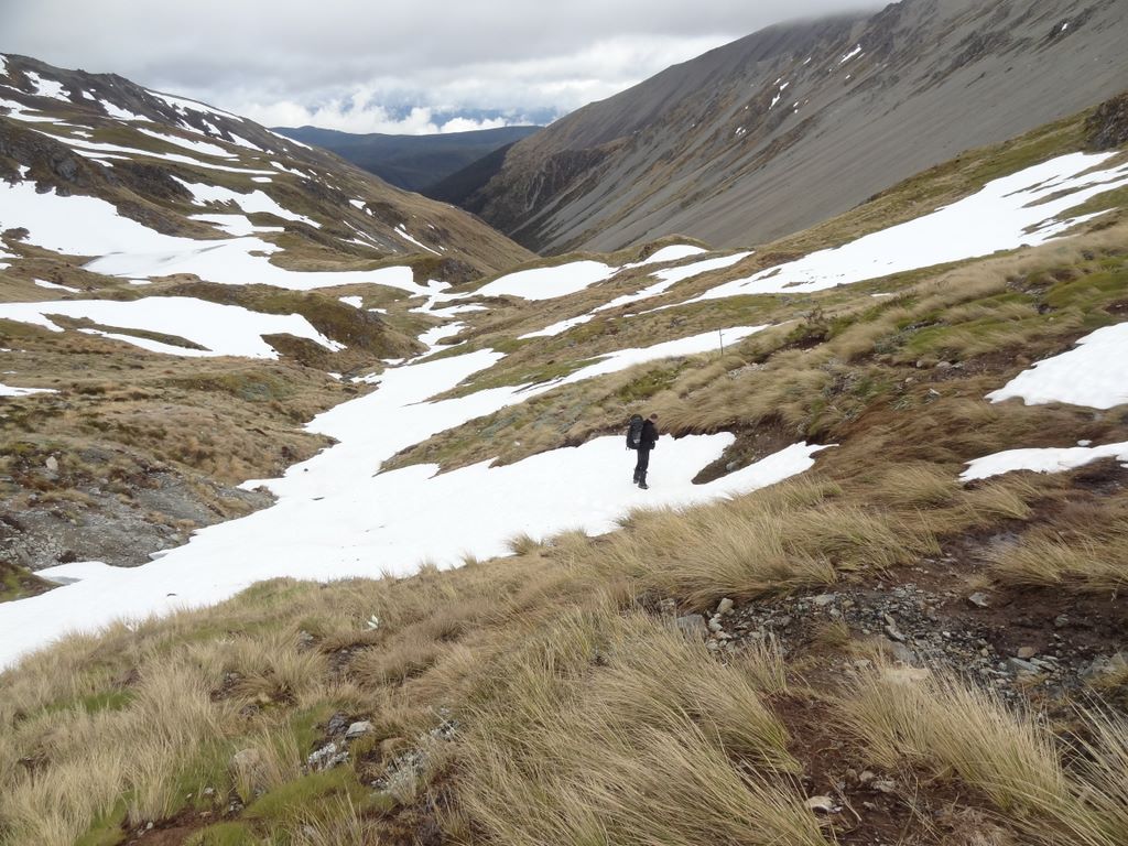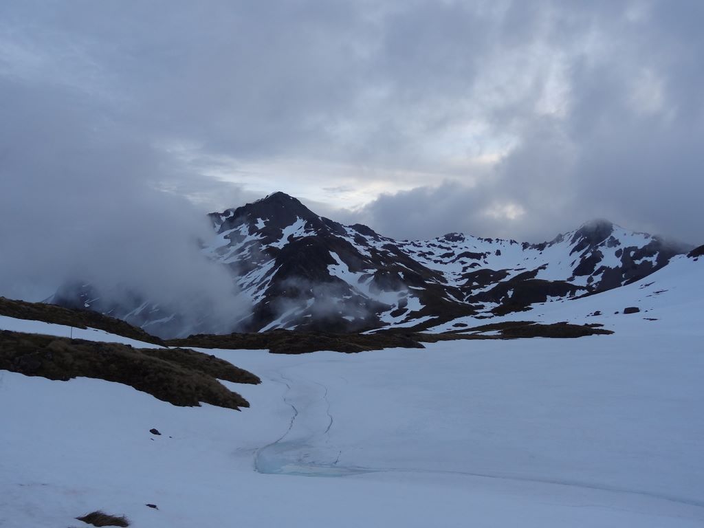 80. .... on va redescendre vers un refuge dans la vallée, celle de l'autre côté de la chaine montagne que nous venons de franchir. La météo nous a prédit beaucoup de vent et de la pluie, et nous pensons que c'est plus sage.