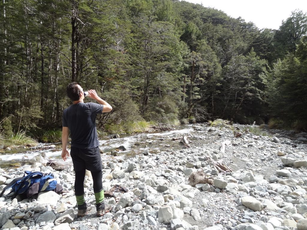 18. Comme le veut le "rituel" de la journée de marche, on finit la journée par une toilette. Ici, à la rivière qui traverse la vallée Travers ....