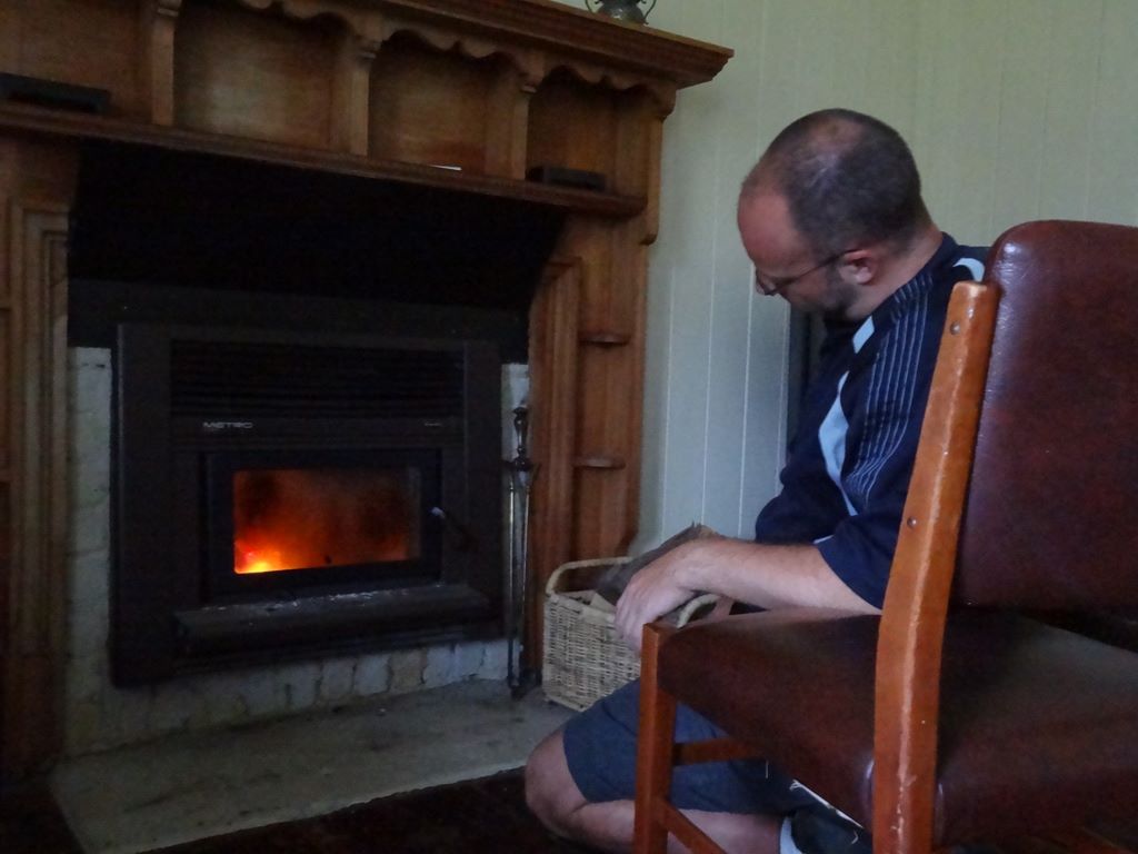 Nous sommes allés passer un weekend avec Biggles dans le Wairarapa. Plus prècisément, à Aotea, dans un cottage qui nous avait beaucoup plu les fois où nous y étions allés. La cheminée n'a pas bougé, ni les murs ondulés!