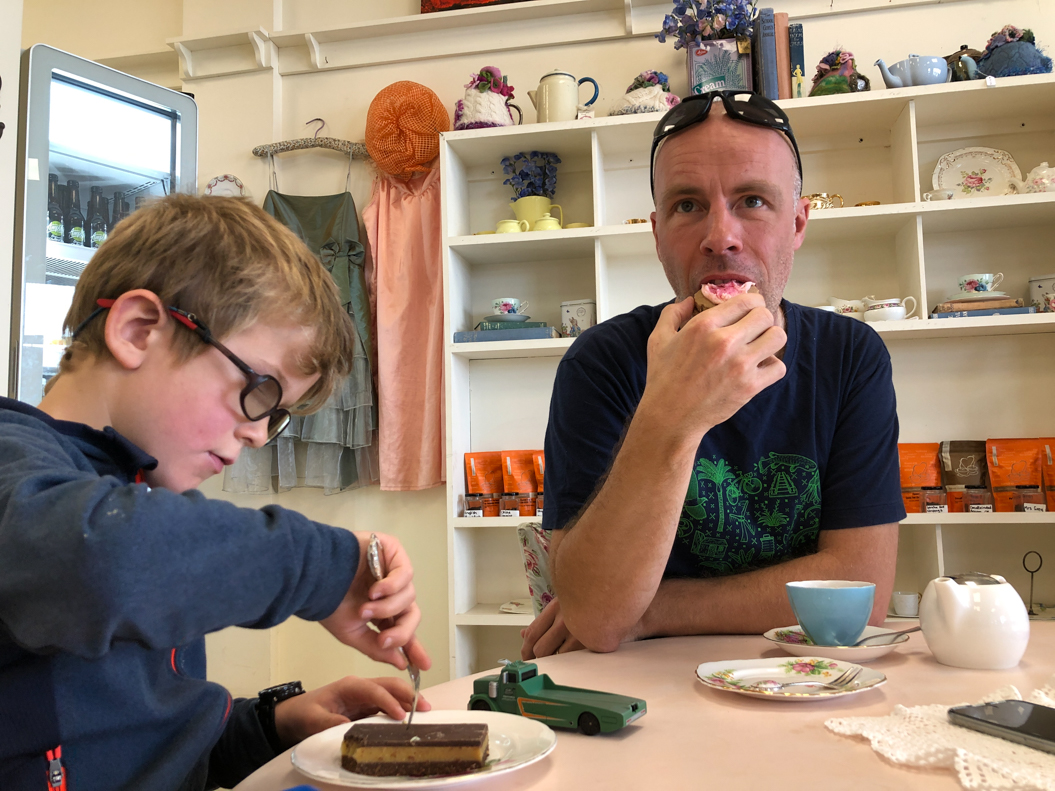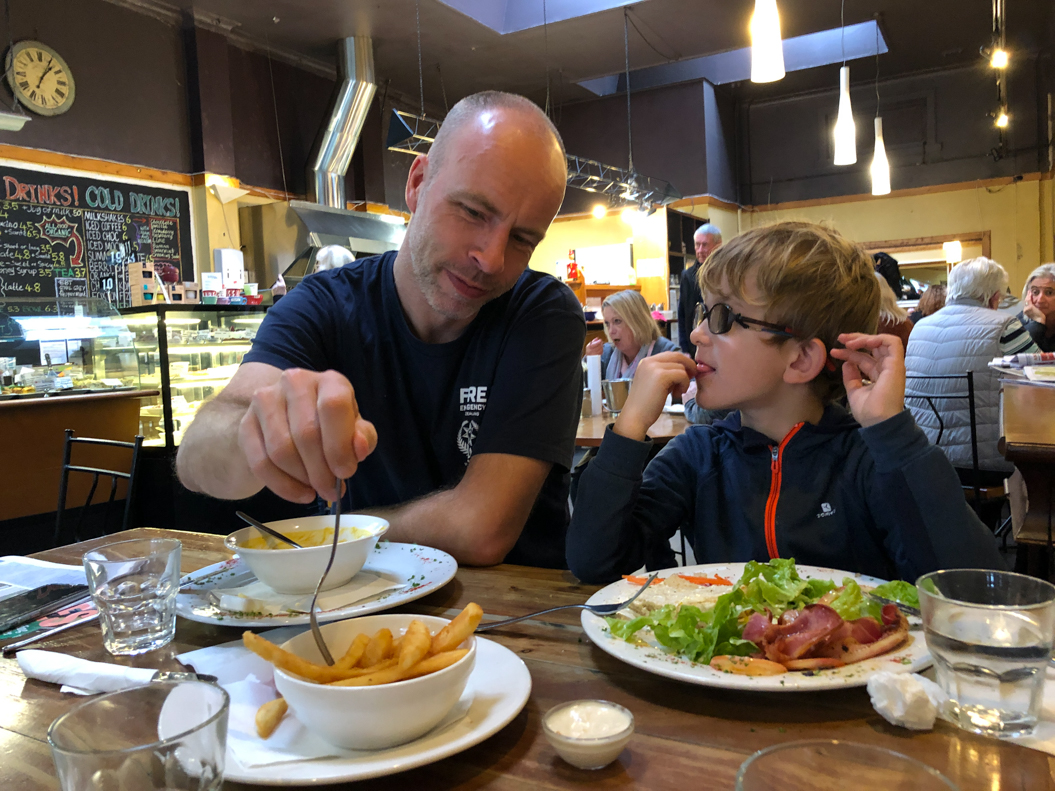 32. Hastings: pendant qu'on mange, la voiture se recharge au chargeur du restaurant!