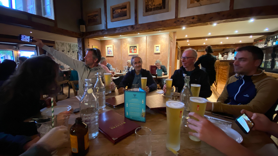 Nous étions 8 au départ, et plus nombreux à l'arrivée si on tient compte des ampoules aux pieds. L'age des randonneurs s'étalait de 7 à 77 ans: Adan (7 ans), Chou, Lolo, Nico, Ben, Xavier, Papa et Patrick (77 ans). La journée fut longue (19.4 kms à parcourir quand même) et nous avons pris notre temps. Je m'attendais à beaucoup de monde, mais finalement, c'était très gérable. La météo a été clémente: ni trop chaud, ni trop froid. Au final, une grande fierté pour beaucoup des randonneurs aux extrémités du spectre des années, et pour tout le monde, des images pleins les yeux, et le plaisir d'avoir vécu cette aventure ensemble!