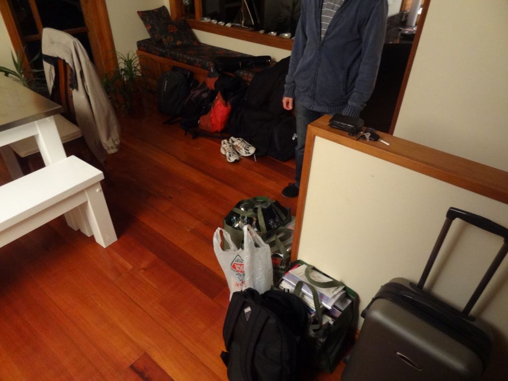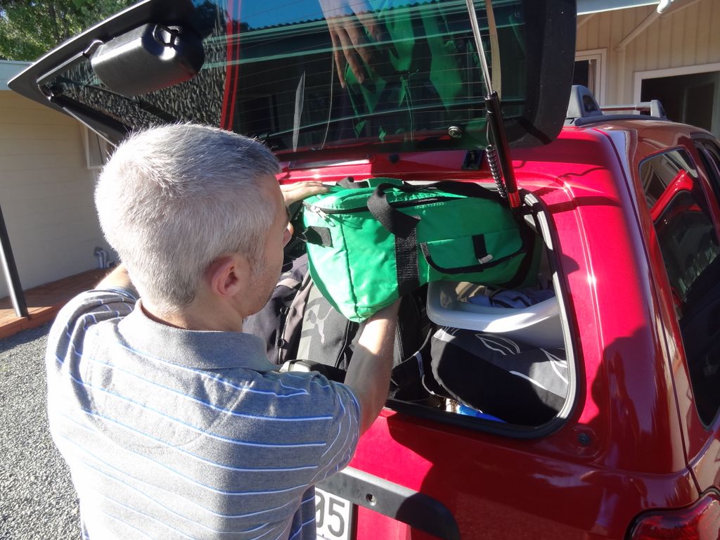 1. Vendredi 16 mars. Nos affaires attendant d'etre chargees dans la voiture ... deja pleine des affaires du bebe!
