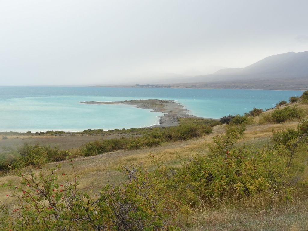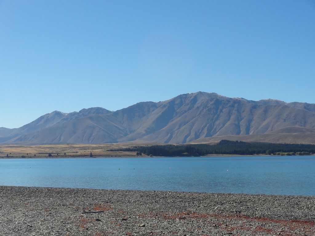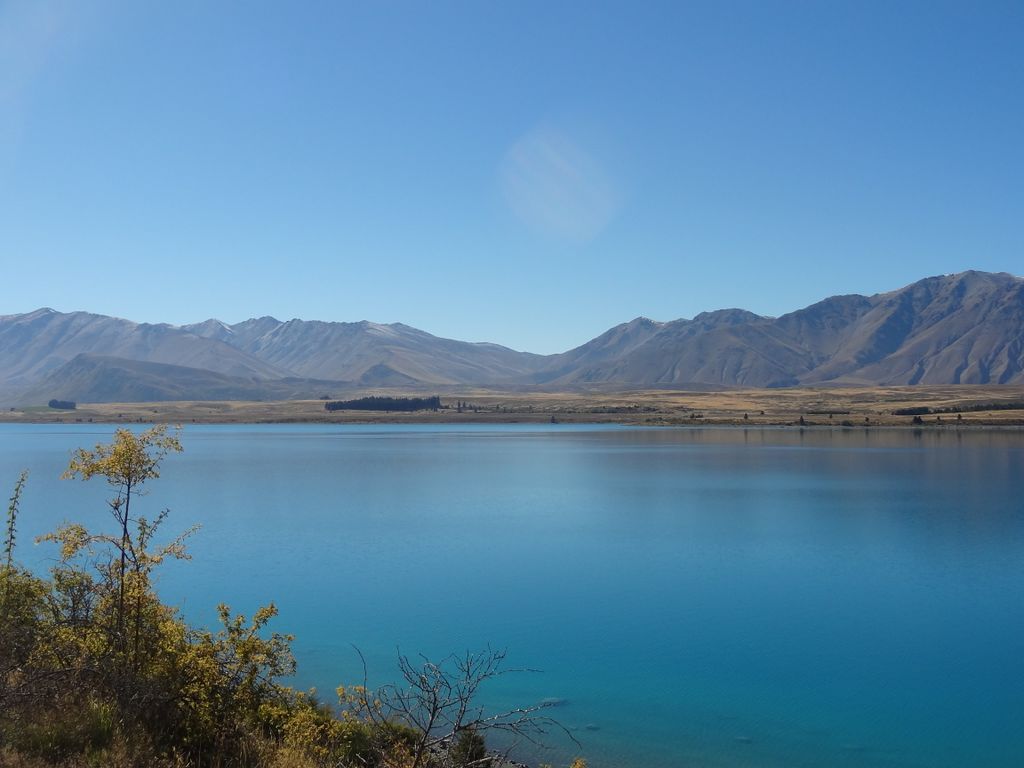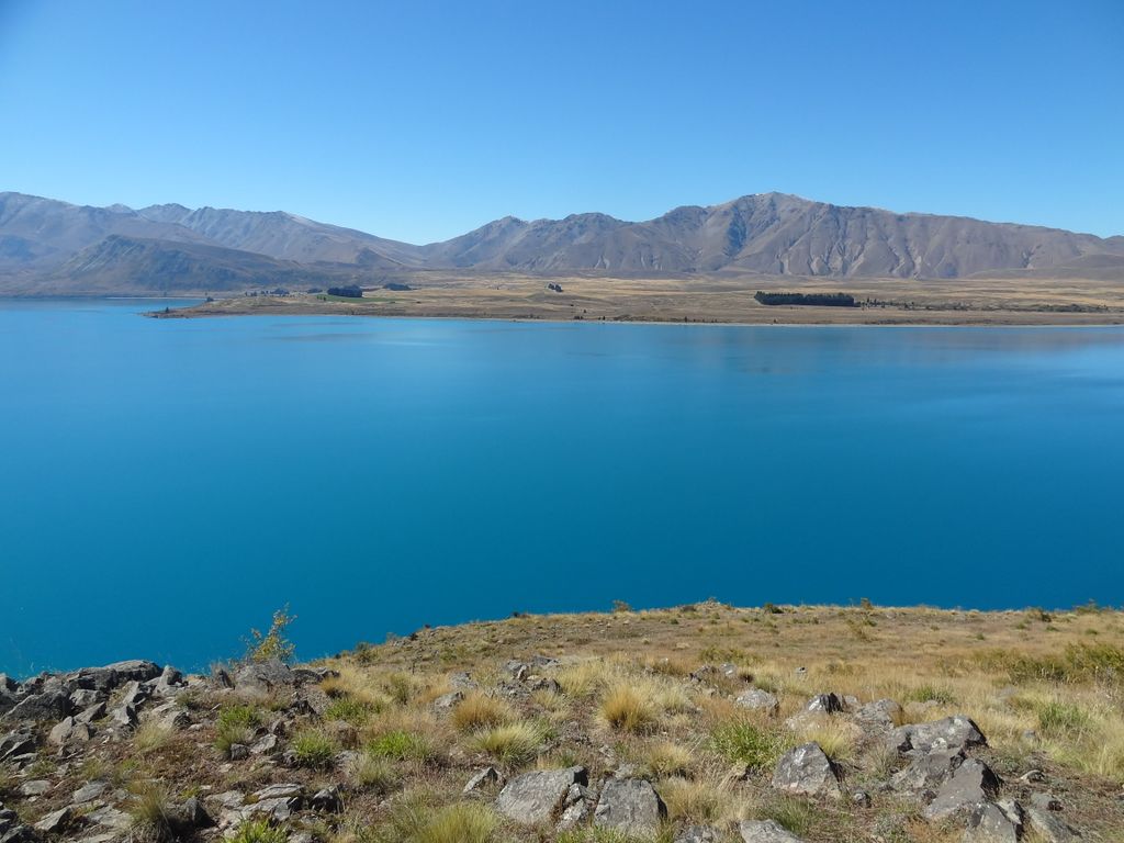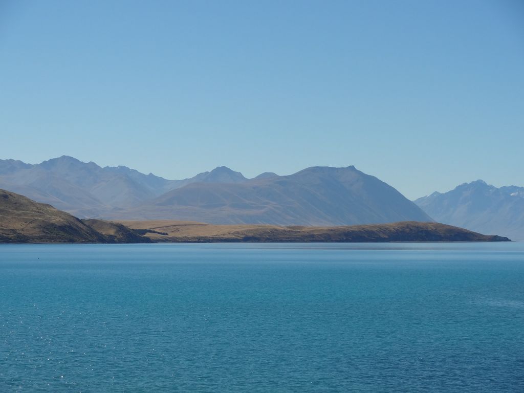 67. Dernier coup d'oeil sur le lac Tekapo, sous le soleil.