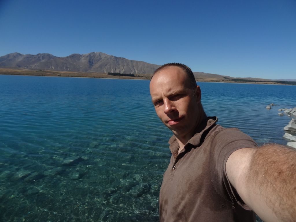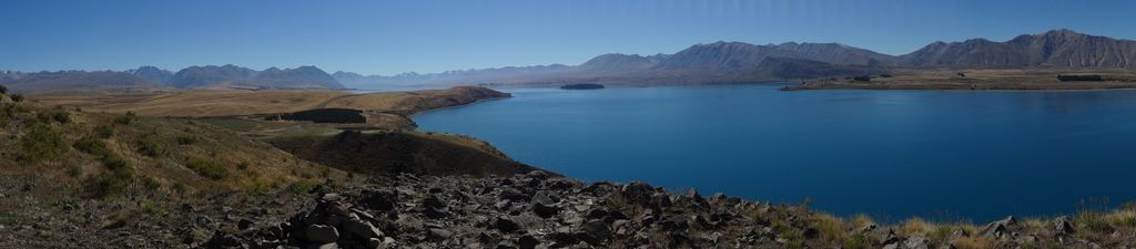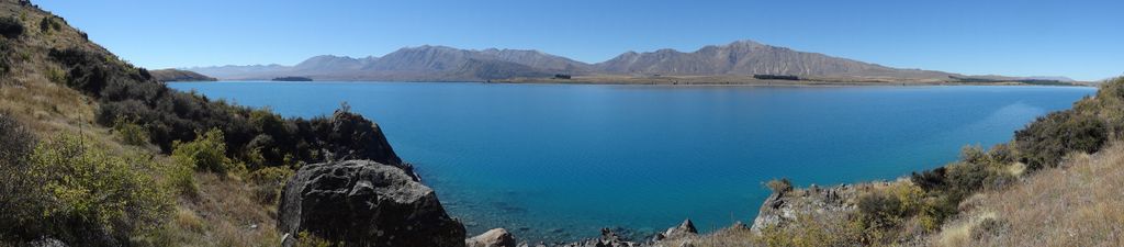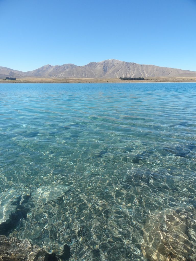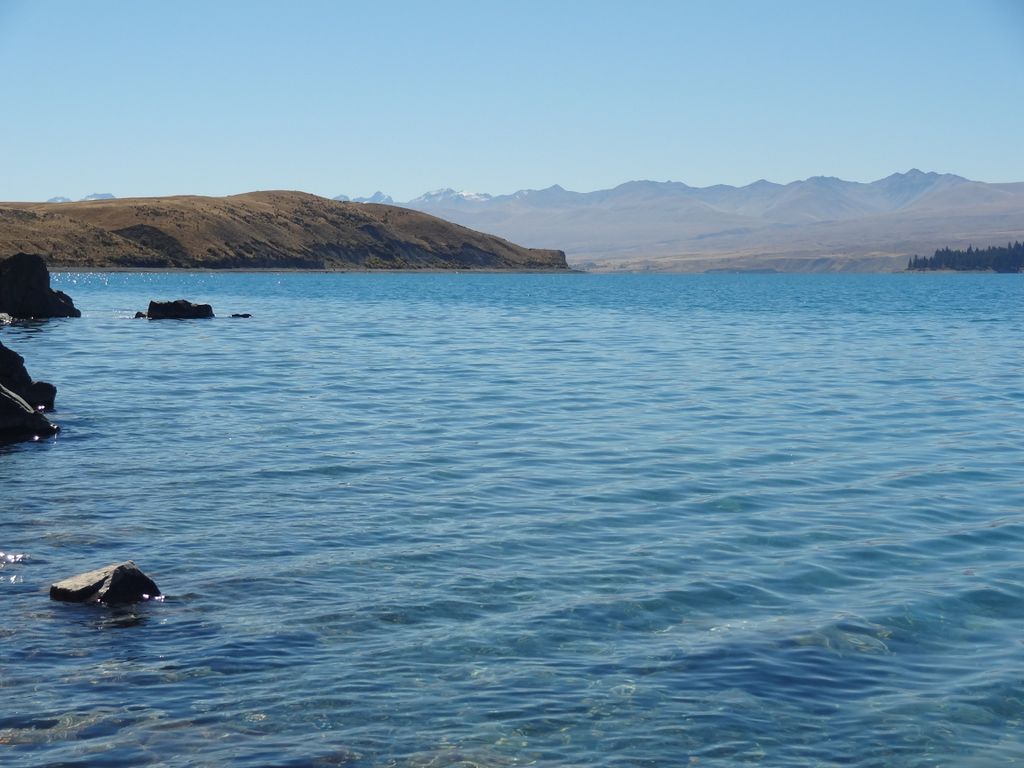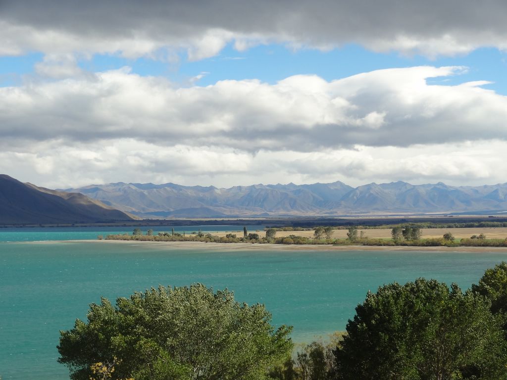67. Dernier coup d'oeil sur le lac Tekapo, sous le soleil.