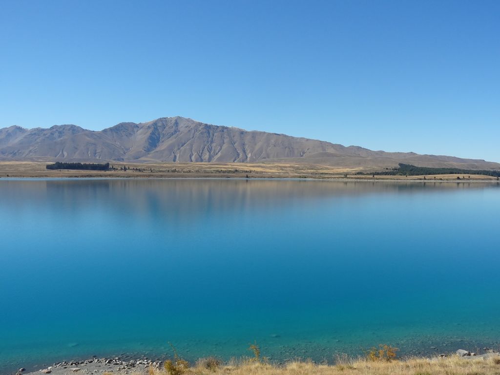 47. Le lac Tekapo. Attention, le bleu est vraiment turquoise sature, c'est pas la photo qui est retouchee!
