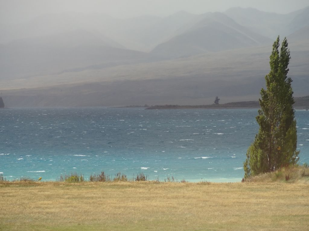 79. Le lac Benmore. Magnifique ... de loin! Nous sommes descendus sur la plage pour etre noyes sous les moustiques. C'etait tel que nous n'avons meme pas pu sortir de la voiture!