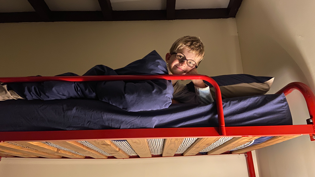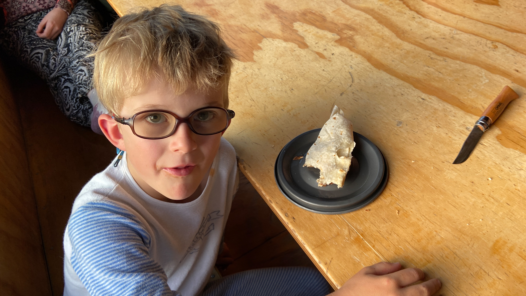 28. Adan reste dans son duvet et bouquine le Picsou que j'avais glissé dans son sac.
