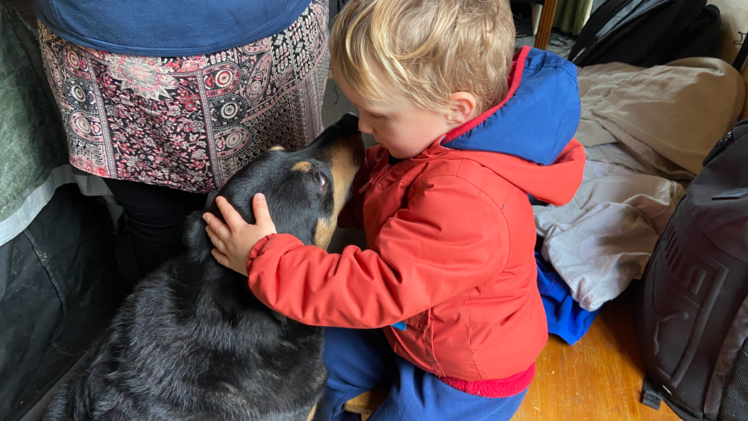 20. Cosmo se détend avec tous les animaux présents chez Jono et Heidi.