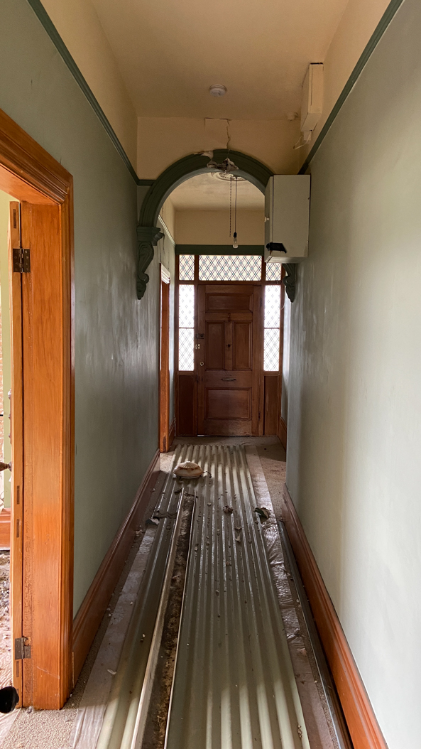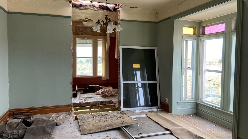26. Comme le toit ne peut être reposé sur la maison tant qu'elle n'a pas été elle même posée sur le sol, les dégâts à l'intérieur sont colossaux. Un sabotage administratif.