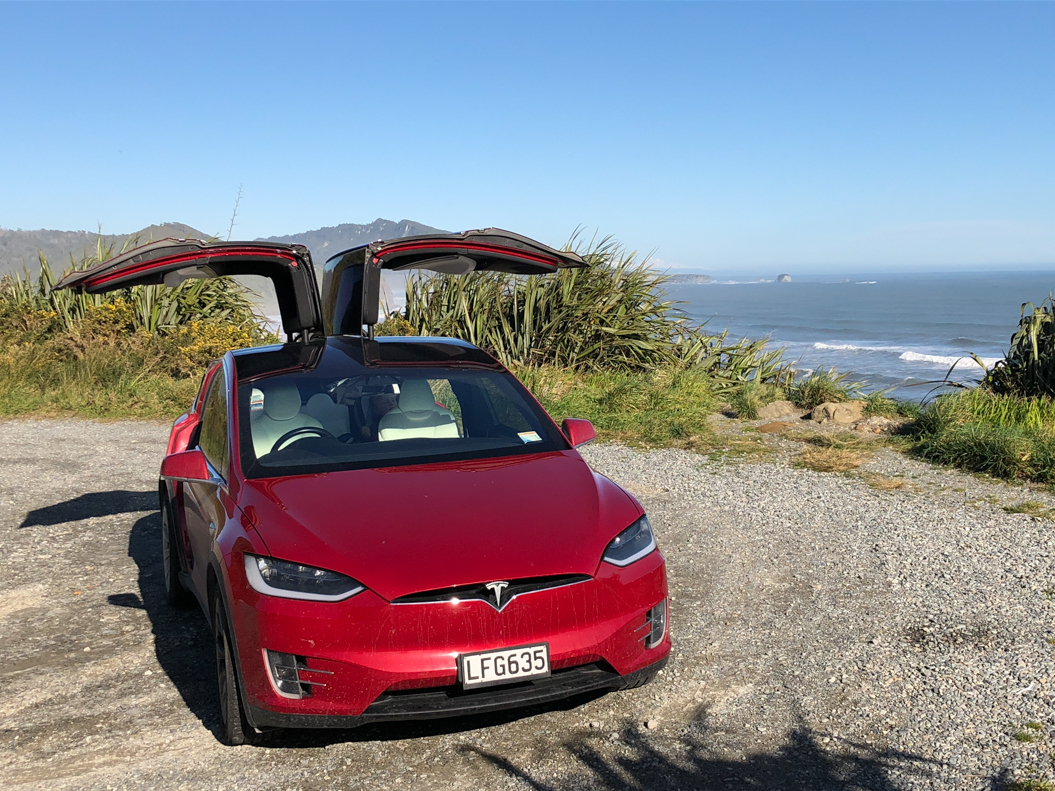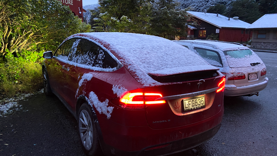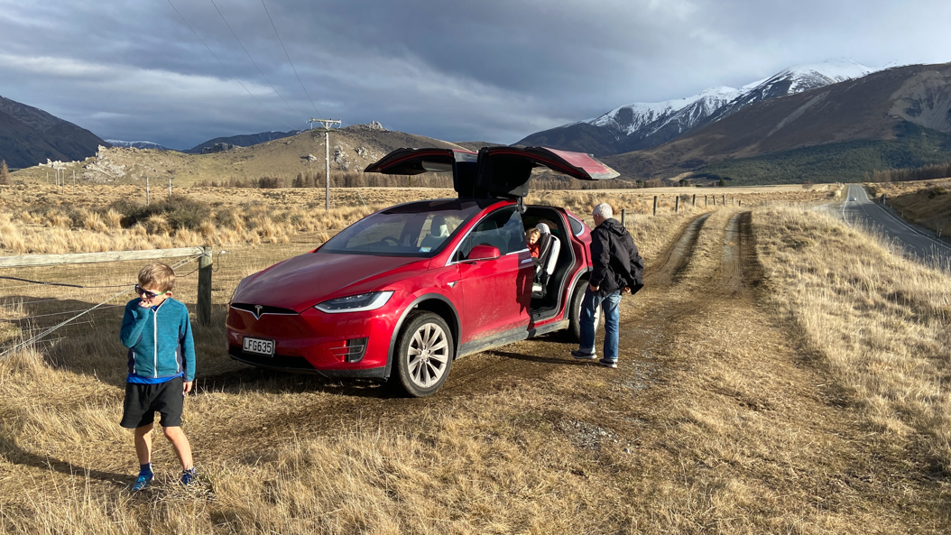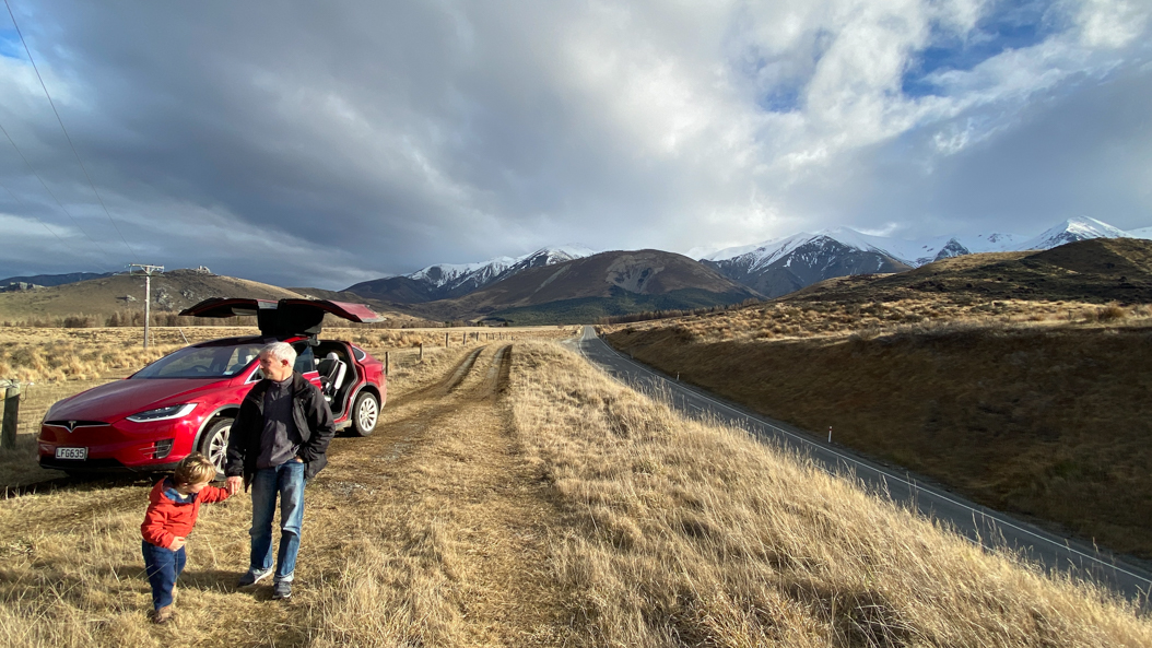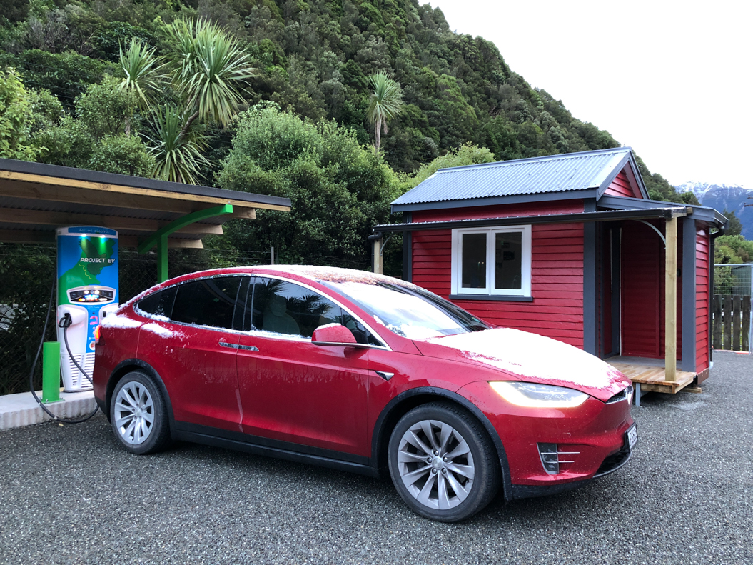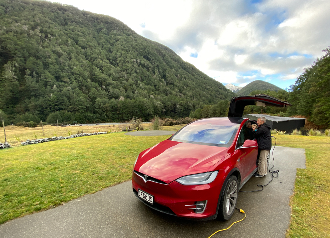 54. Puis, on charge la voiture, mais le chargeur est situé à Otira, 20 minutes au Nord d'Arthur's Pass. Seul moyen de se restaurer: marcher 15 minutes le long de l'autoroute ...