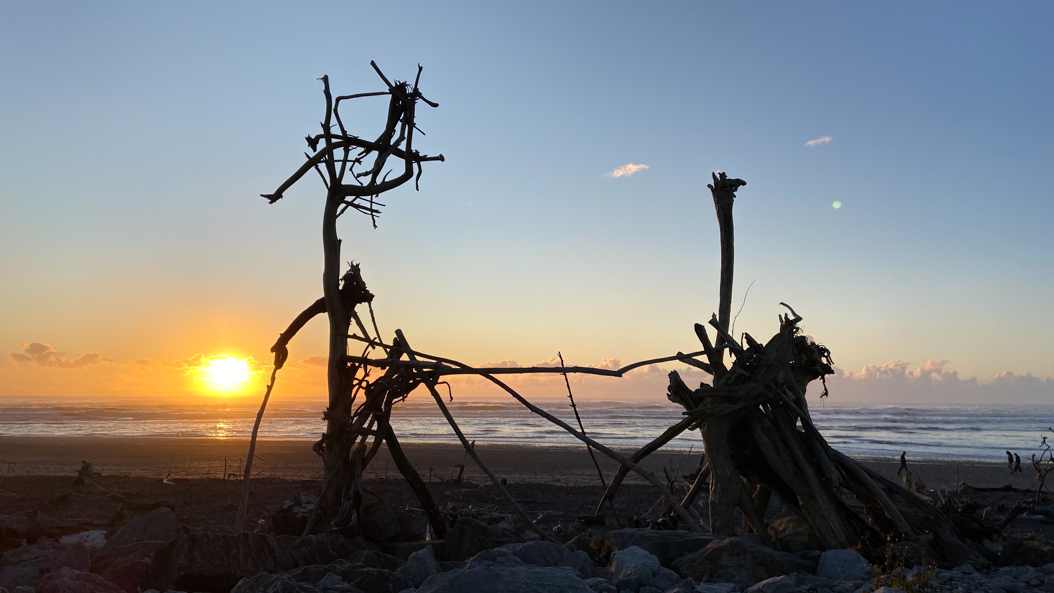84. La plage de Hokitika.