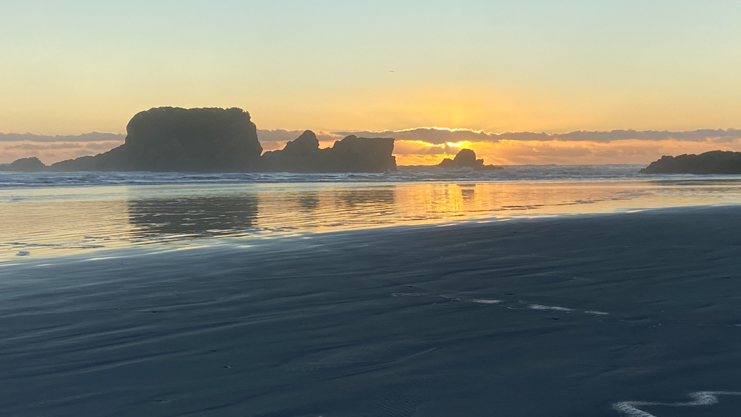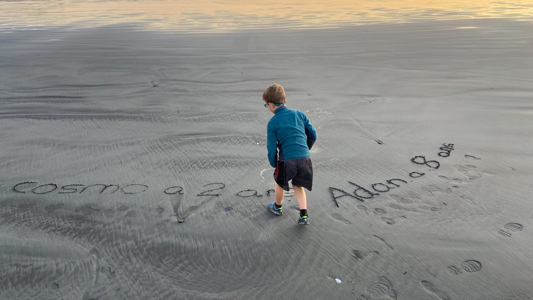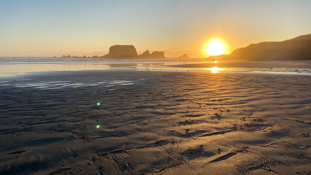 79. Arrivés à Hokitika, on profite tout de suite de la plage.