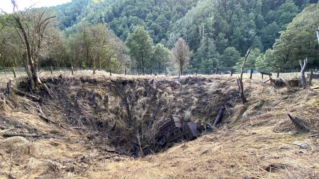 133. A l'approche de Murchinson, nous partons faire une jolie promenade appelée Matakitaki walk. Elle longe un couloir creusé dans la forêt pour amener l'eau d'une rivière en amont d'une centrale hydraulique. Celle ci a alimenté les quelques fermes alentours pendant quelques décennies.