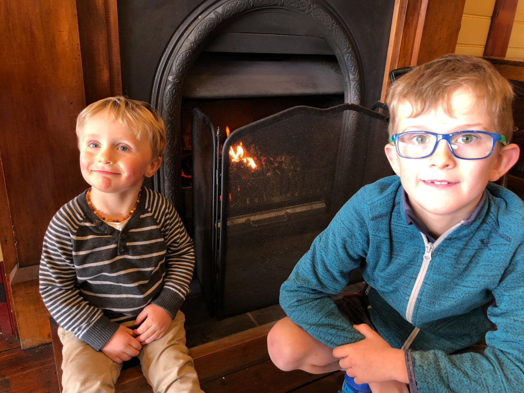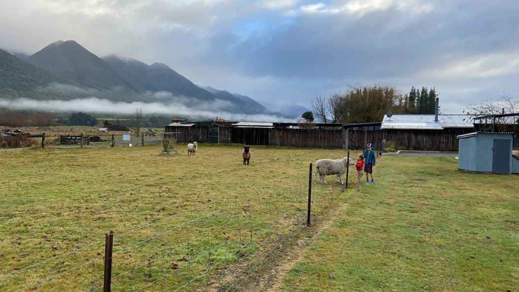 128. Maruia Springs étant complet, on s'est loué un petit cottage à Springs Junction, un groupuscule de maison. Le cottage est juste à côté de la route, et s'il est très propre, il est peu chauffé. Les deux frères se tiennent compagnie et Cosmo réchauffe le dos d'Adan.