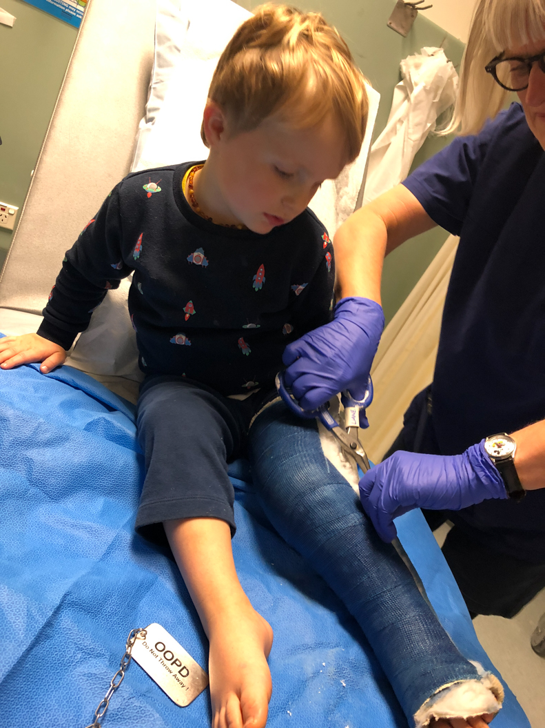 33. ... on vient enlever le plâtre de Cosmo ...