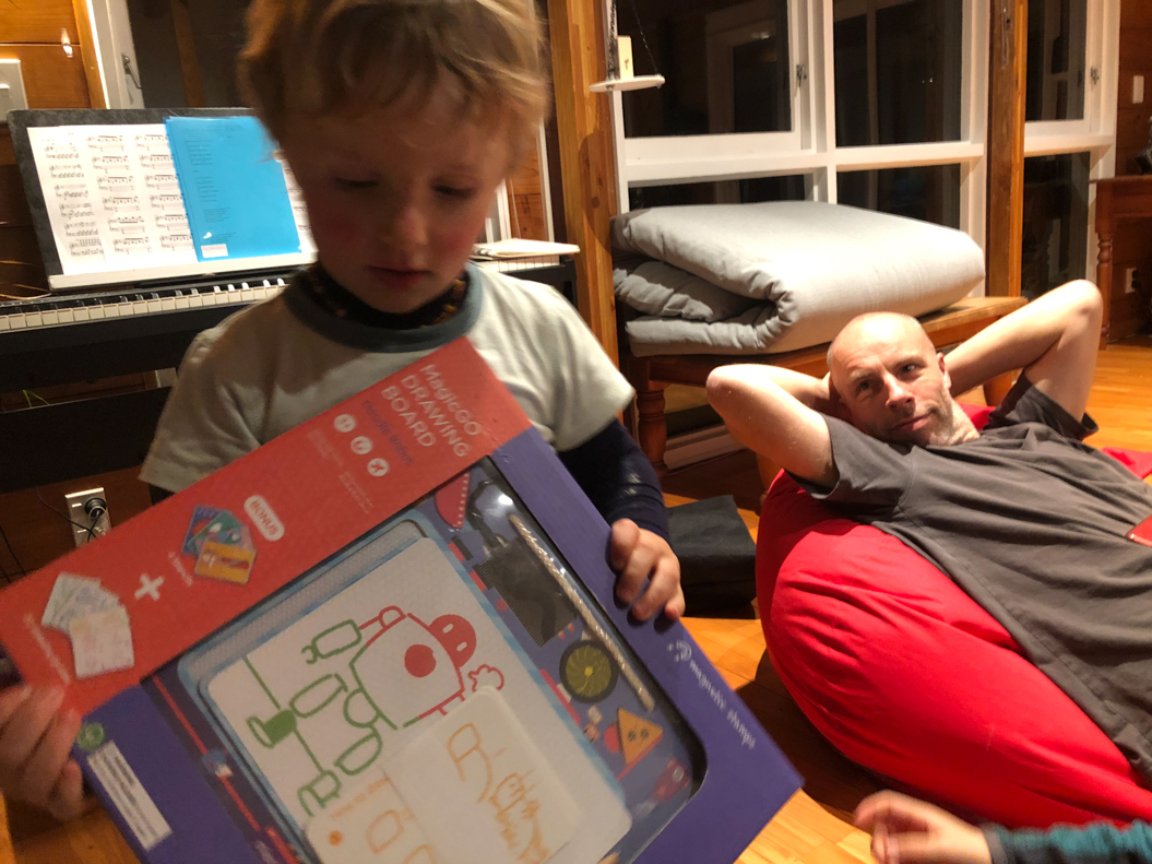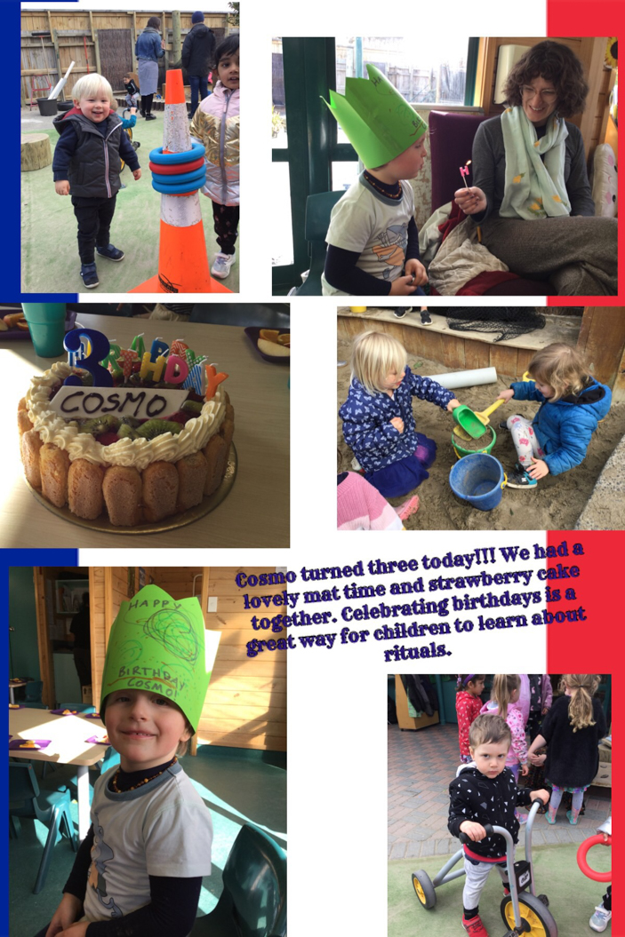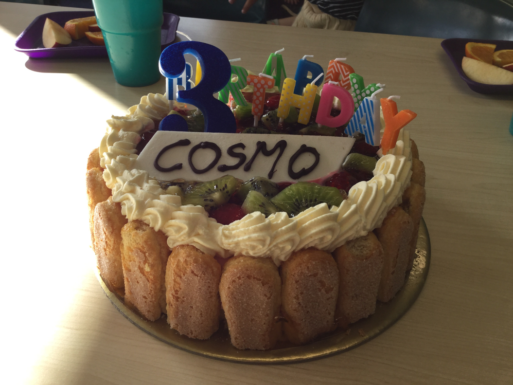 Pour l'anniversaire de Cosmo, il y a eu plusieurs fêtes. A la maison bien sur, avec le traditionnel Jo. A la crêche aussi, où nous avons pu apporter un gateau. Et enfin, la fête avec l'anniversaire de Léonard, avec tous les amis et la famille!