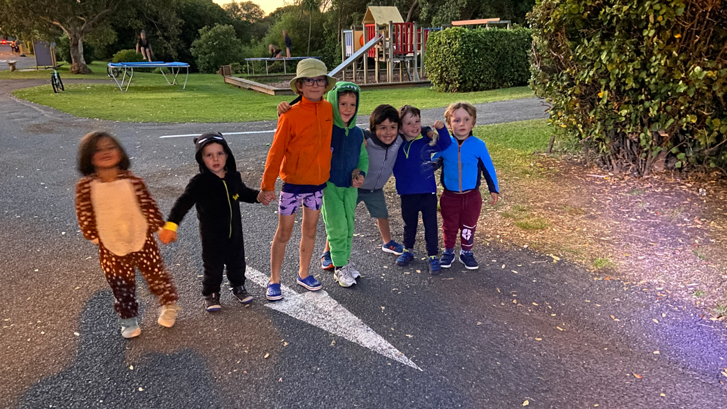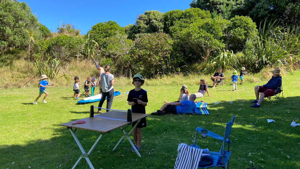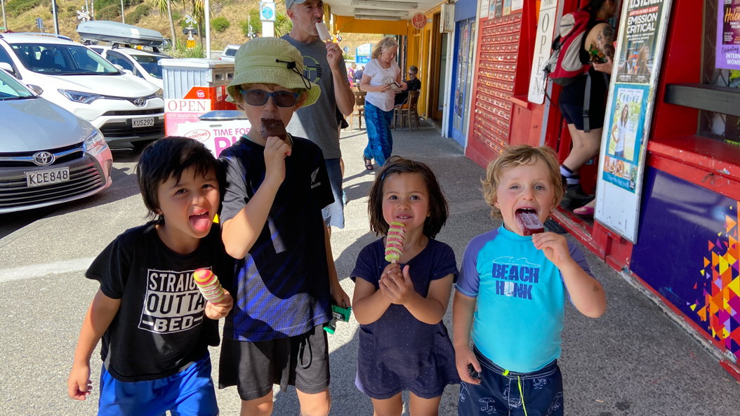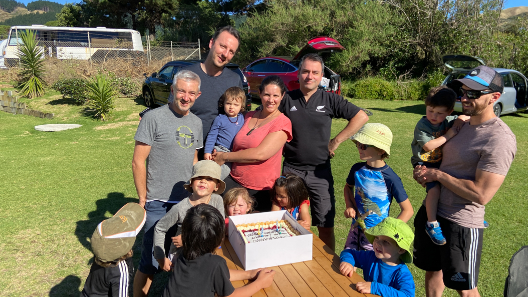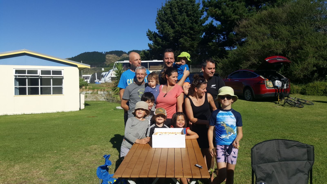 Encore une fois, toute la bande (à part Amélie et Brian) s'est retrouvée en camping, mais cette fois ci, un peu moins loin de Wellington. Nous avons essayé le camping de Paekakariki, très joli, très boisé (juste un peu bruyant la nuit) et entre deux baignades, avons fêté les anniversaires de Nico, Laurent, Seb et Mathilde. Heureusement que nous avions du gateau pour les rassembler ou nous n'aurions pas vu les enfants du week-end!