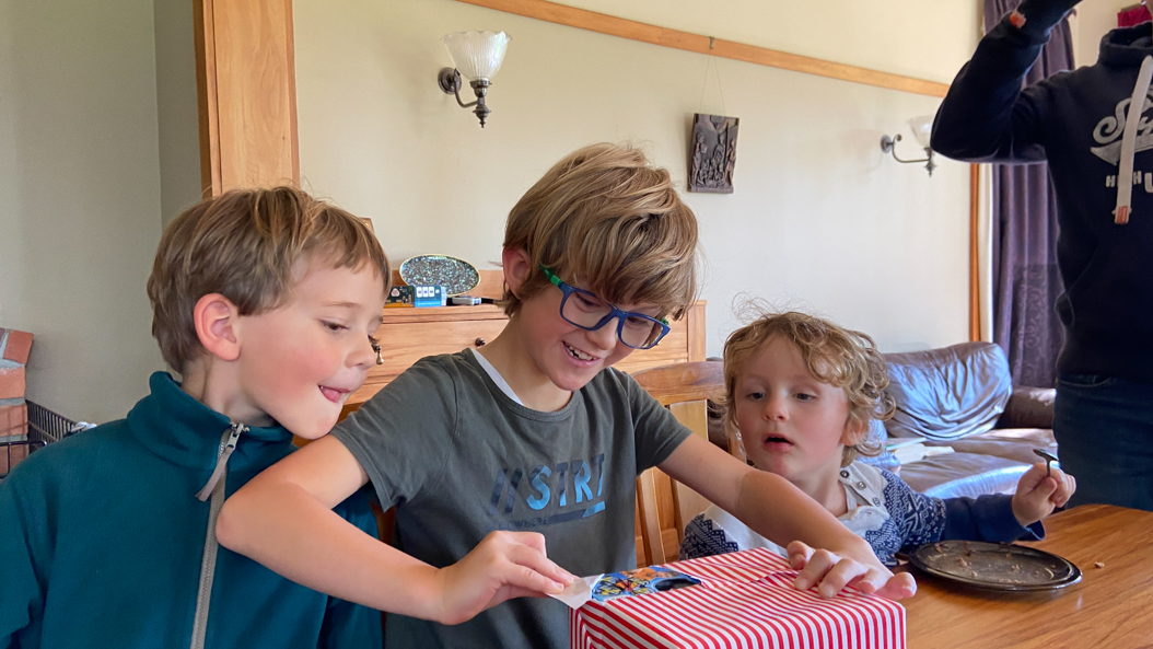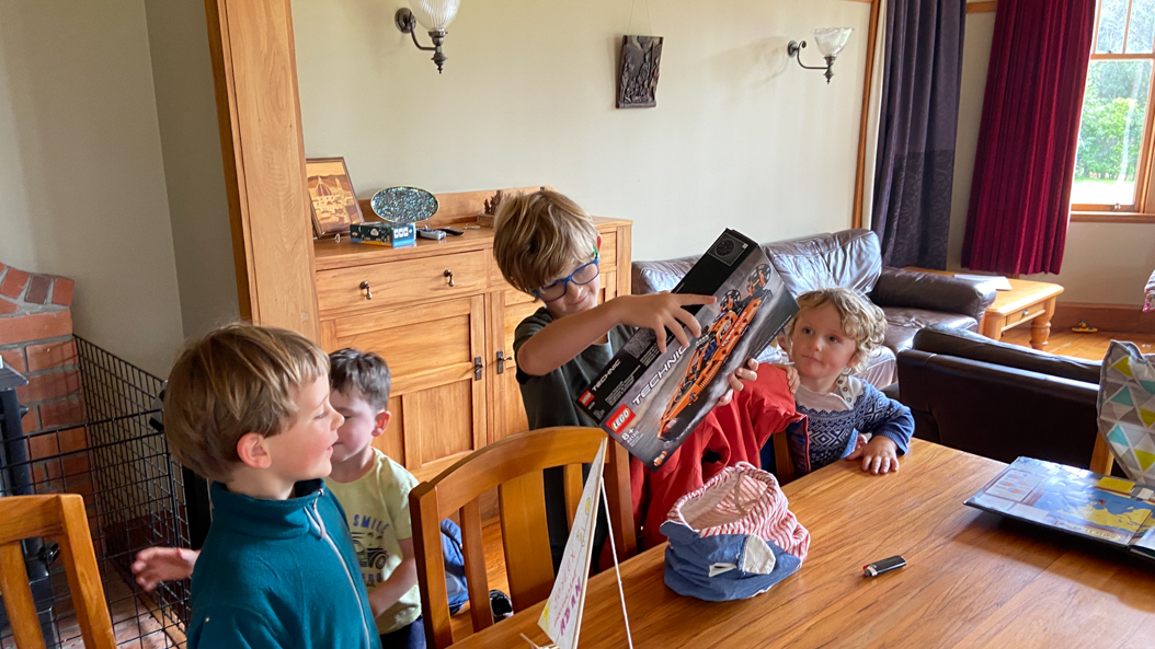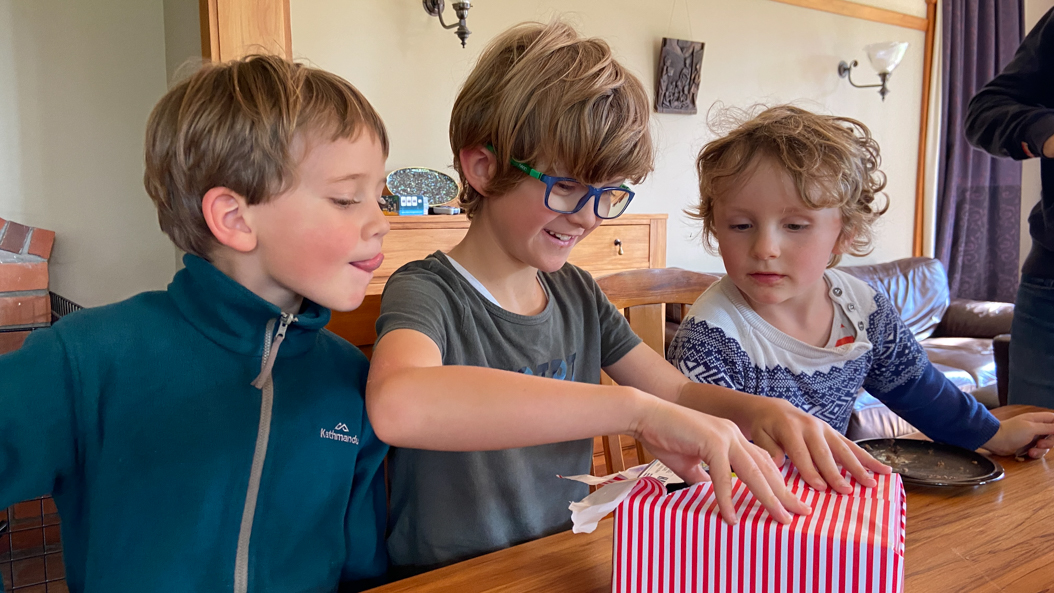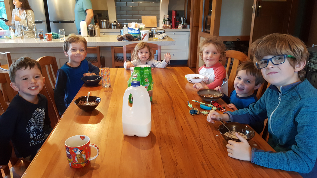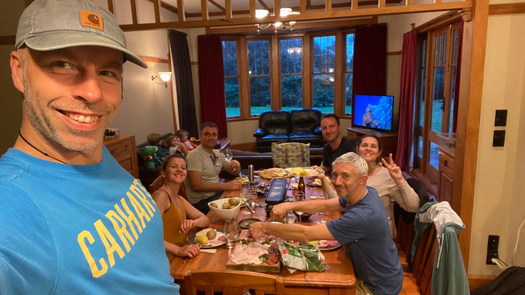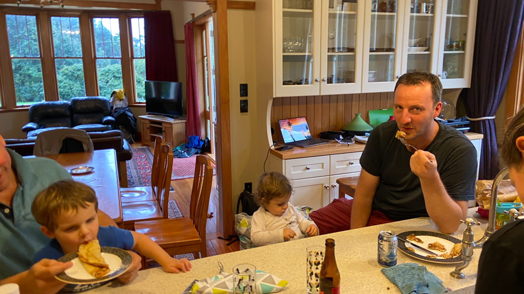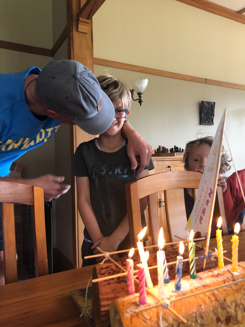 Pour la deuxième année consécutive, nous sommes allés passer le weekend dans cette grande maison au calme, un peu en retrait de la mer à Waikanae. Il y avait Nico et Lolo et leurs familles respectives, donc forcément, un grand moment pour les cousins! On en a profité aussi pour fêter l'anniversaire d'Adan qui, bien qu'un peu malade, s'est senti bien entouré et aimé ce weekend. Et puis bien sur, il y a eu la chasse aux oeufs: celle-ci s'est bien passée garce a l'établissement d'un jeu de règles bien précis et clairement énoncés avant le lachage des enfants dans le jardin! Juste un peu dommage que Seb se soit fait repérer un peu avant en train de "chercher son téléphone dans le jardin"!