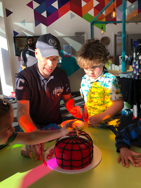 Pour les 4 ans de Cosmo, il y a eu plusieurs fetes. Celle a la maison en famille, bien sur. Il y a eu le spectacle de Madagascar en ville, et enfin, la fete a Capital E avec tous les copains de la maternelle. Trois jours de festivite dont Cosmo a bien profite!