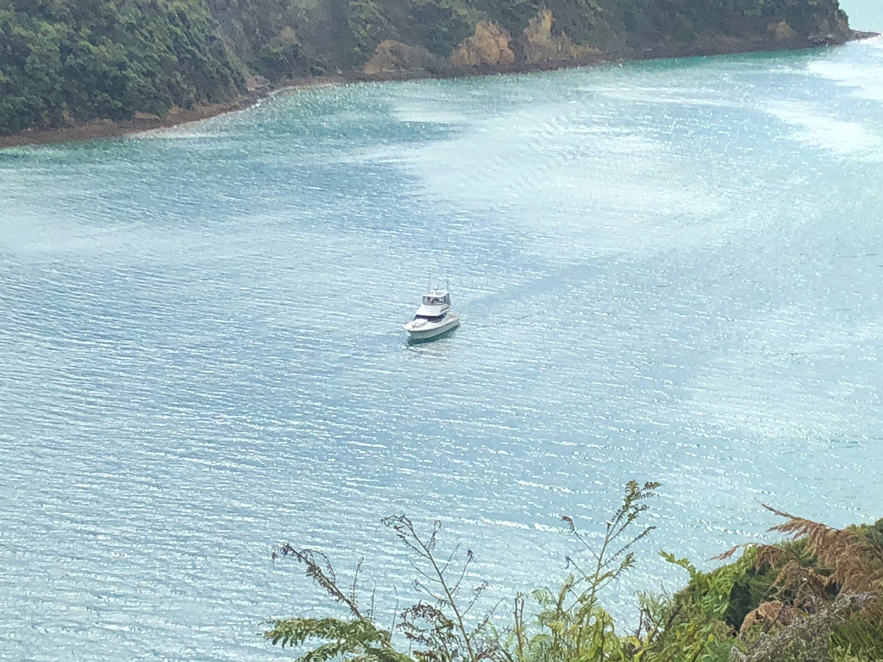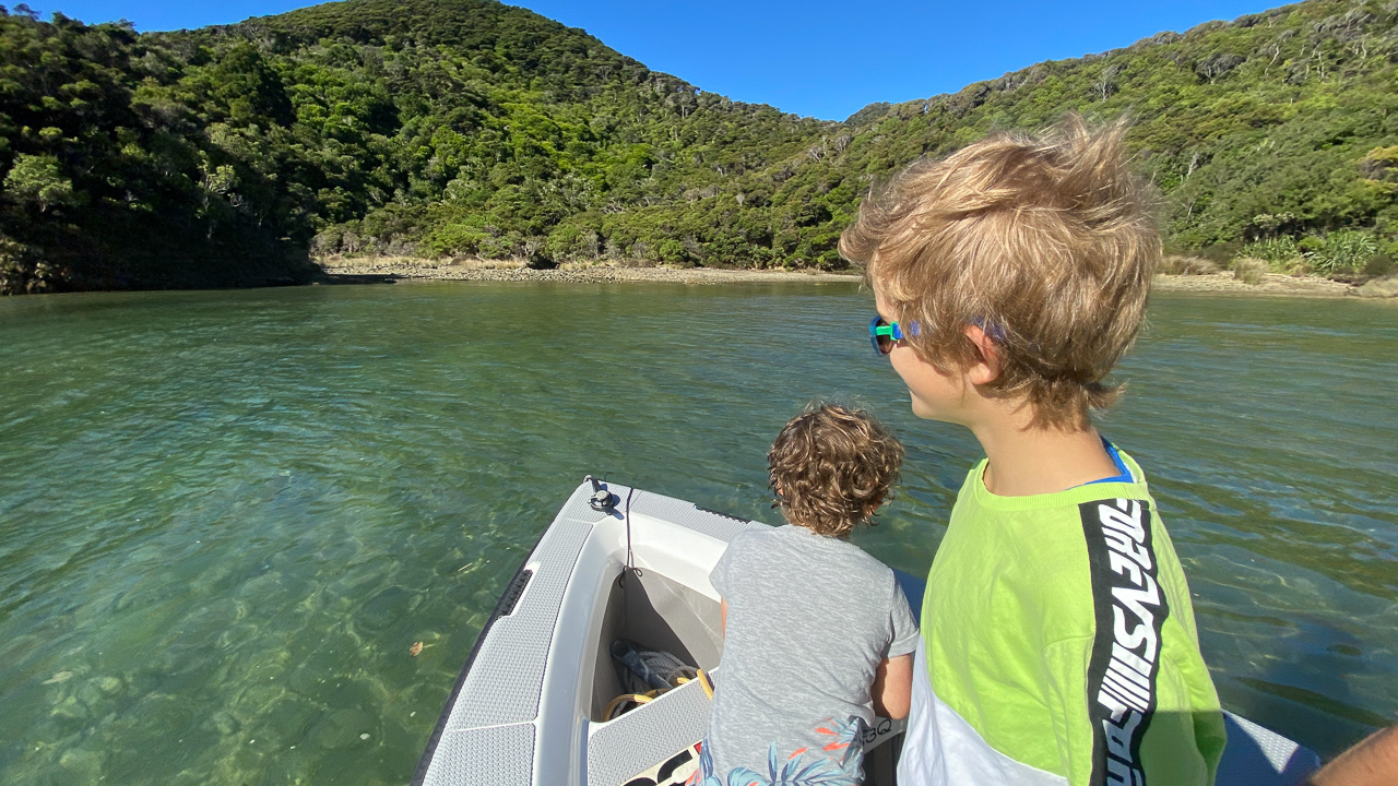 26. Puis, il nous emmene avec son petit zodiac en fibre de carbone faire un tour au fond de la baie. Les garcons sont eblouis.