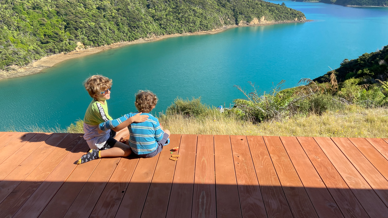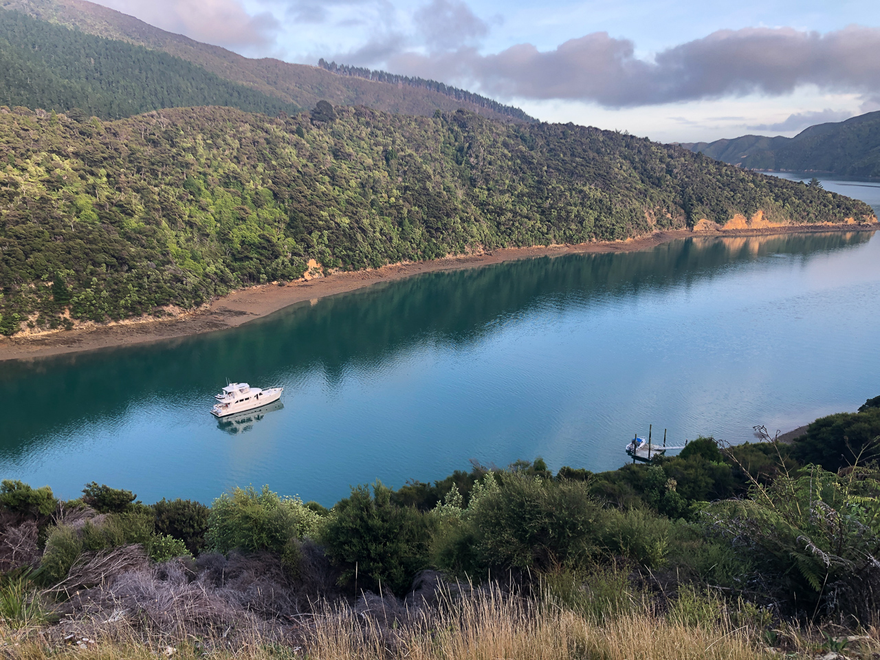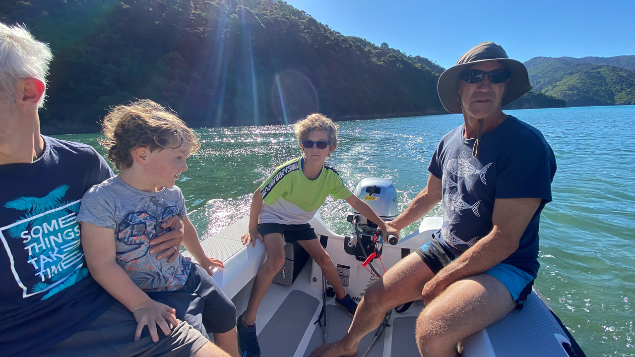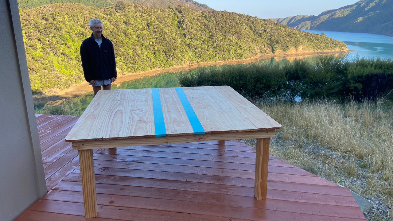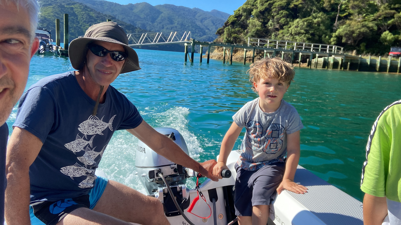 Nous avions des billets pour aller passer un weekend dans l'ile du Sud afin d'assister a un evenement. Mais celui ci ayant ete reporte pour cause de COVID, nous avons prolonge notre sejour d'une semaine et sommes alles travailler depuis d'Urville Island. La bas, nous avons constate que la tempete survenue un mois plus tot avait grippe la production d'electricite et il nous aura fallut 48h pour relancer le systeme. J'y ai aussi construit une nouvelle table et Adan a peche sa premiere grosse piece! Sur le retour, nous avons croise des invites de marque.