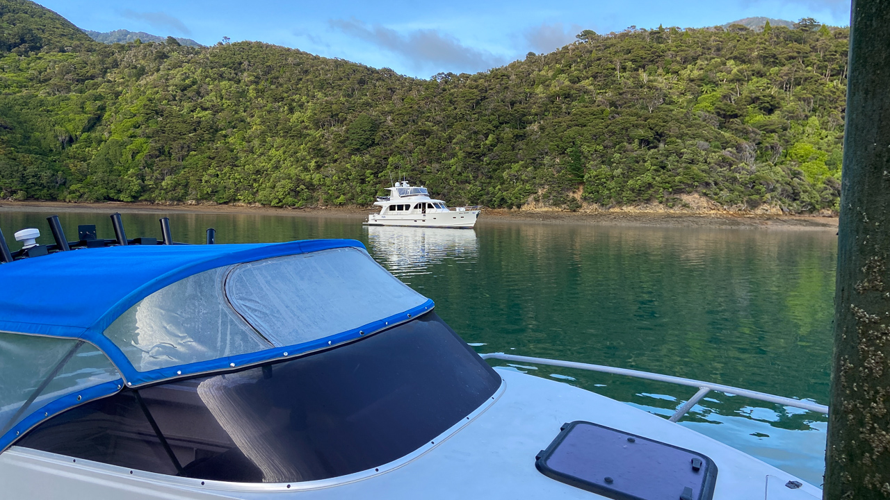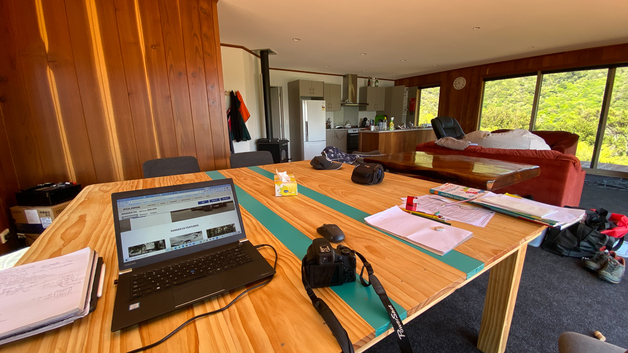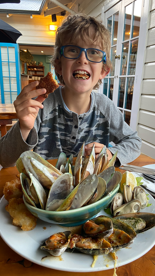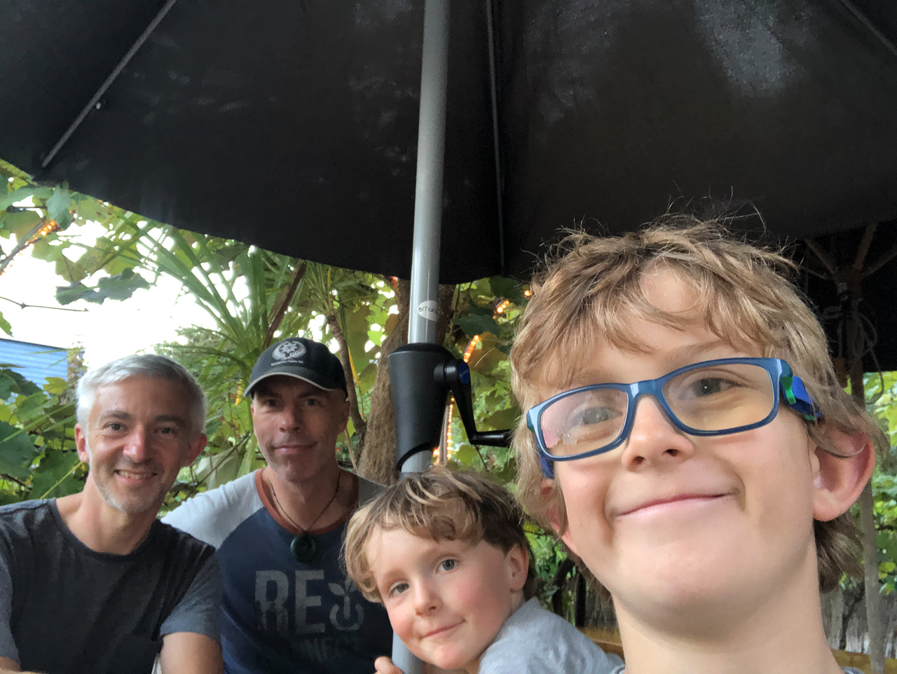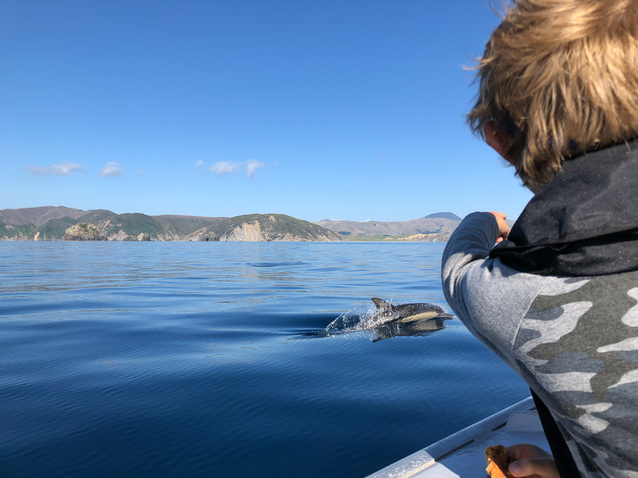 Nous avions des billets pour aller passer un weekend dans l'ile du Sud afin d'assister a un evenement. Mais celui ci ayant ete reporte pour cause de COVID, nous avons prolonge notre sejour d'une semaine et sommes alles travailler depuis d'Urville Island. La bas, nous avons constate que la tempete survenue un mois plus tot avait grippe la production d'electricite et il nous aura fallut 48h pour relancer le systeme. J'y ai aussi construit une nouvelle table et Adan a peche sa premiere grosse piece! Sur le retour, nous avons croise des invites de marque.