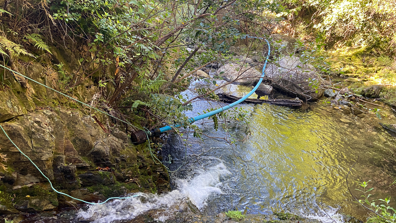 6. La tempete a souleve la prise d'eau pour la centrale hydro. Le tuyau s'est vide et il nous faut maintenant trouver un systeme pour remplir ses 800 metres.