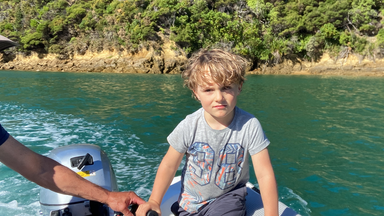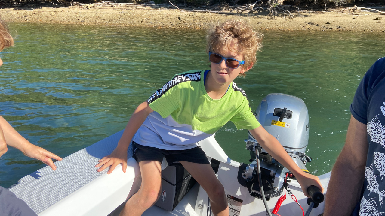 28. Puis Graeme laisse Adan piloter le bateau. Inutile de dire qu'il est aux anges
