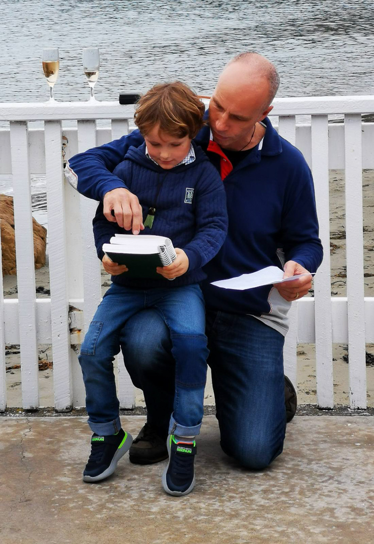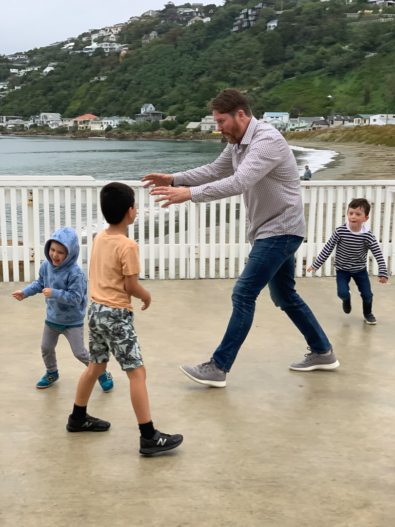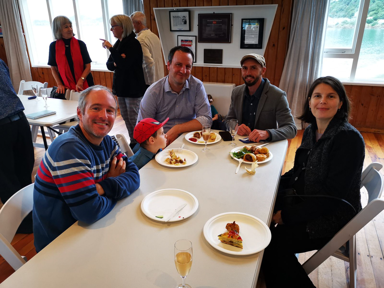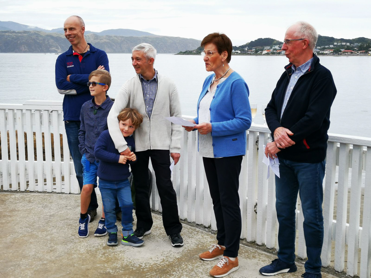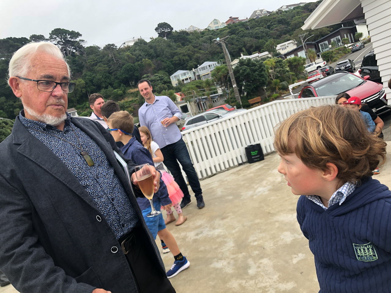A l'approche des 5 ans de Cosmo, et profitant de la presence des parents, nous avons organise le bapteme civil de Cosmo. Le petit gars etait tout remonte et on pouvait voir a quel point il goutait chaque seconde de cette journee. La meteo ne nous a pas permis de faire ca a la maison, alors on s'est rattrape sur le surf club de Worser Bay, la ou Seb et moi nous etions maries, en 2014. Tous les acteurs de cette super journee etaient la, y compris Roy, notre ami et celebrant, toujours present pour les grands moments de notre famille.