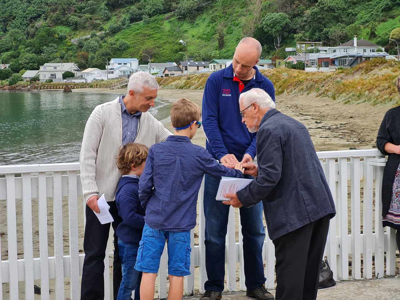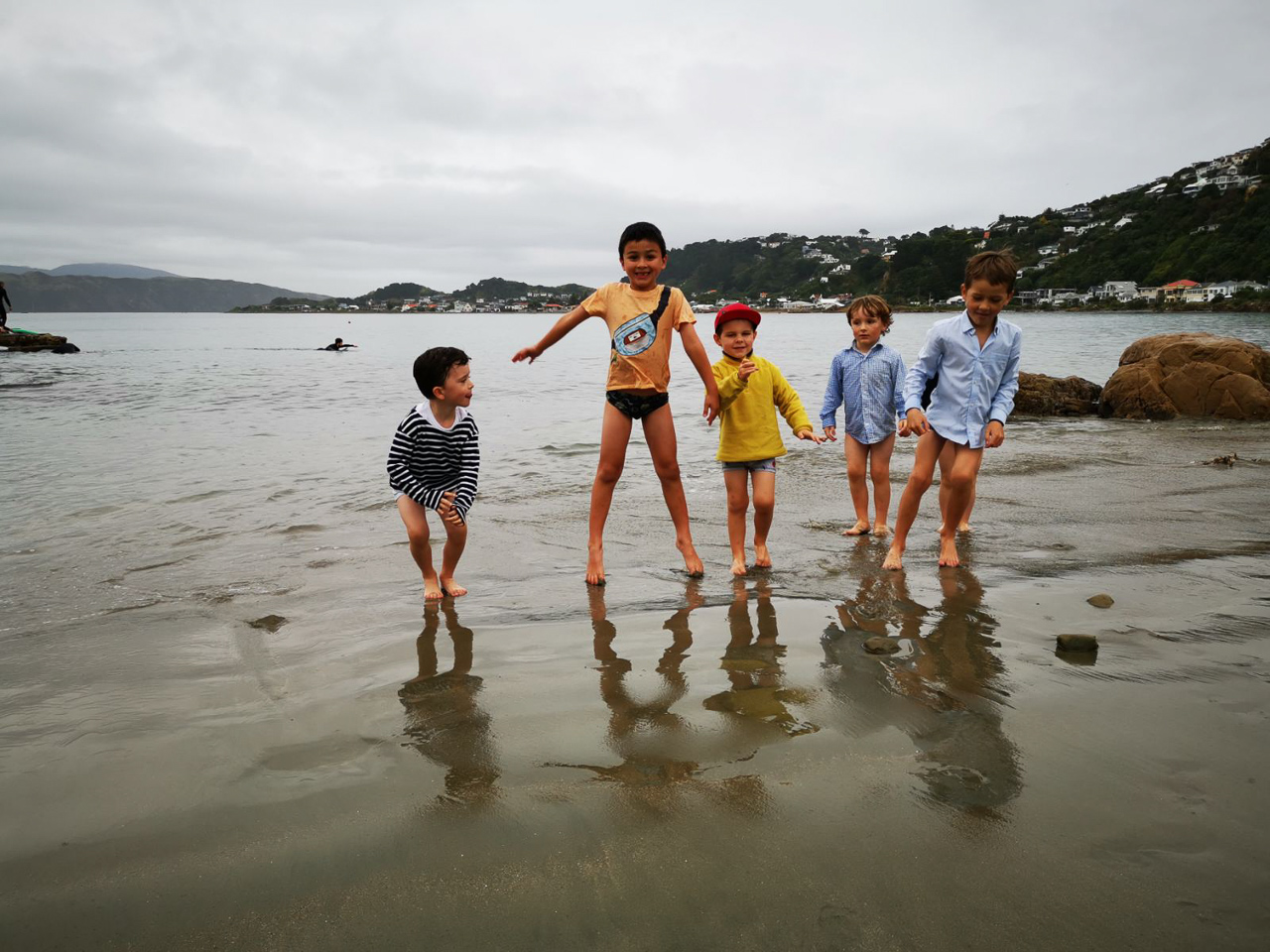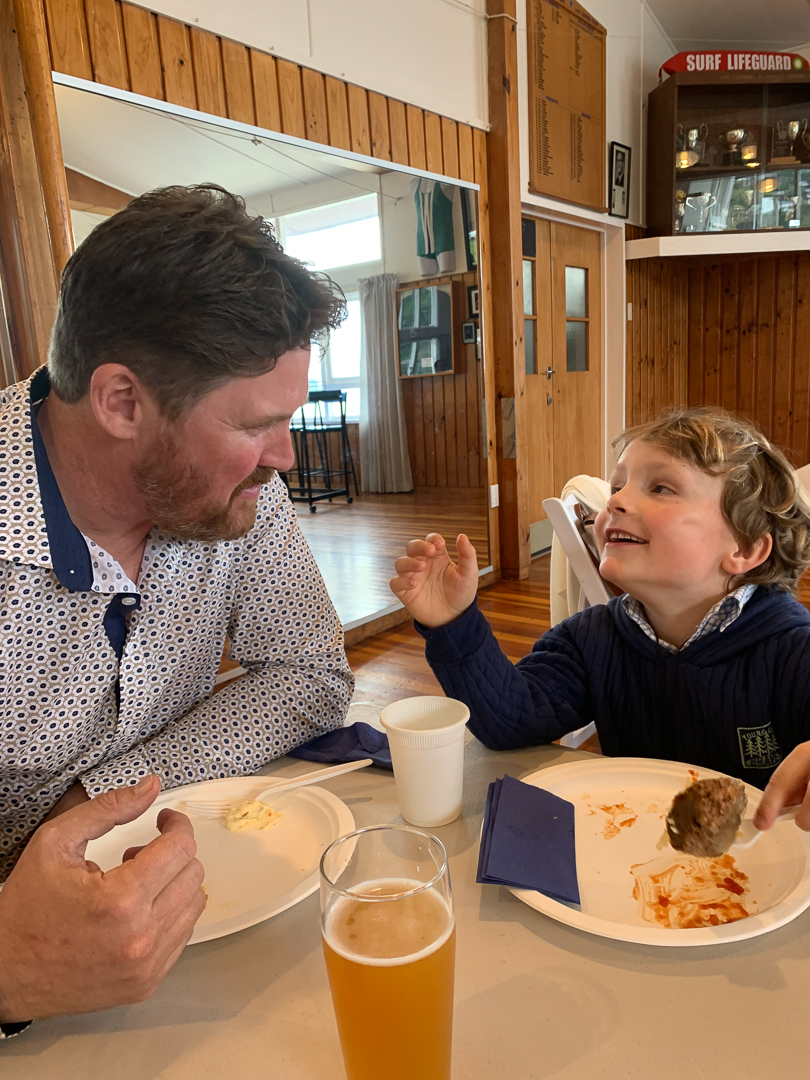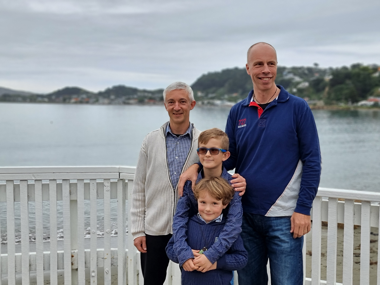 A l'approche des 5 ans de Cosmo, et profitant de la presence des parents, nous avons organise le bapteme civil de Cosmo. Le petit gars etait tout remonte et on pouvait voir a quel point il goutait chaque seconde de cette journee. La meteo ne nous a pas permis de faire ca a la maison, alors on s'est rattrape sur le surf club de Worser Bay, la ou Seb et moi nous etions maries, en 2014. Tous les acteurs de cette super journee etaient la, y compris Roy, notre ami et celebrant, toujours present pour les grands moments de notre famille.