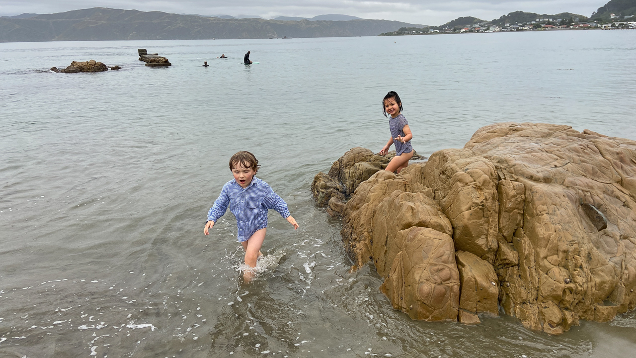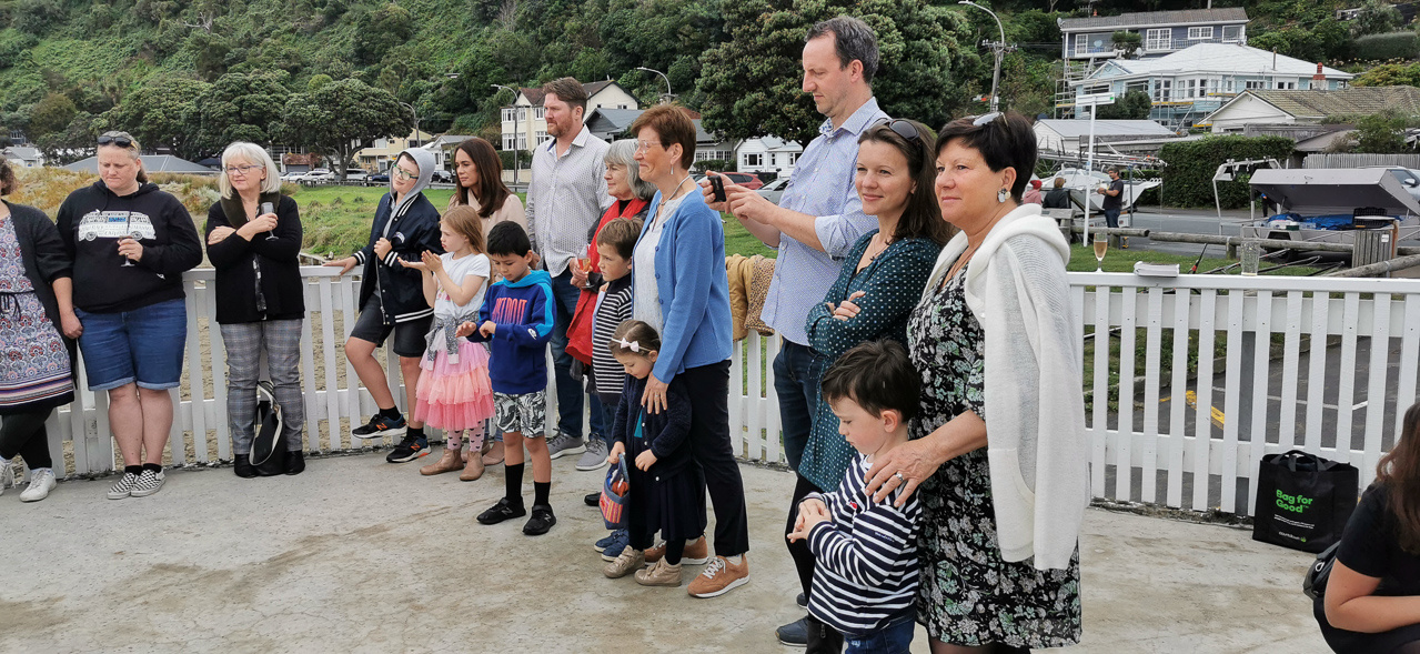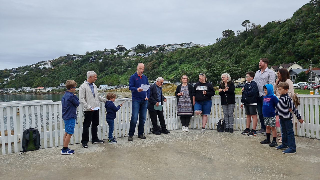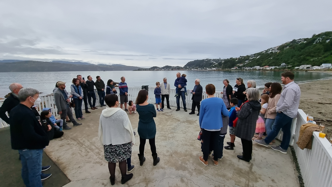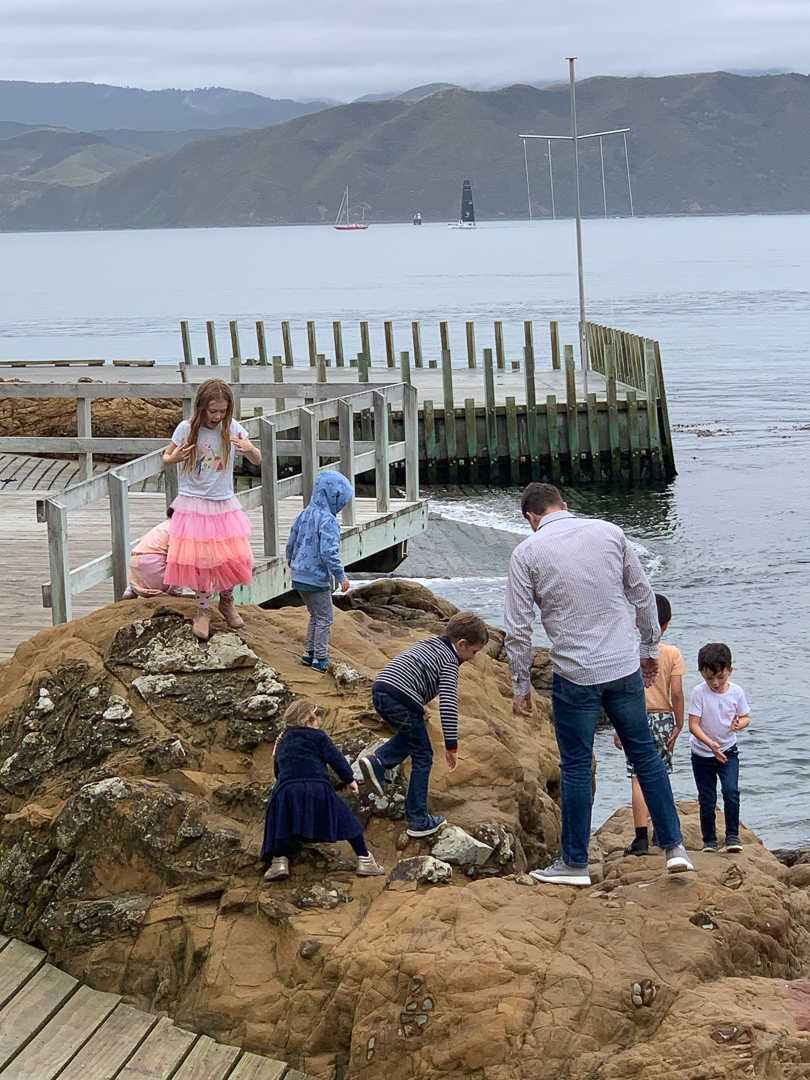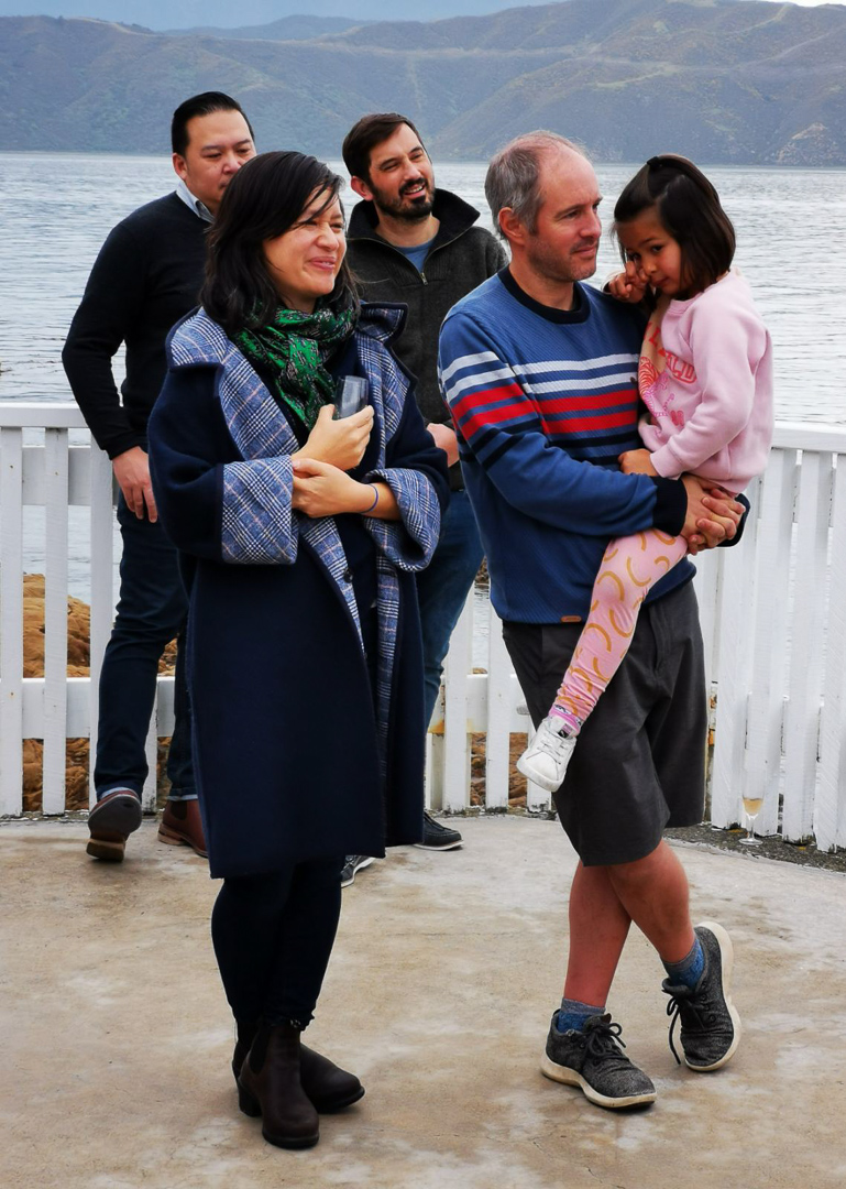 A l'approche des 5 ans de Cosmo, et profitant de la presence des parents, nous avons organise le bapteme civil de Cosmo. Le petit gars etait tout remonte et on pouvait voir a quel point il goutait chaque seconde de cette journee. La meteo ne nous a pas permis de faire ca a la maison, alors on s'est rattrape sur le surf club de Worser Bay, la ou Seb et moi nous etions maries, en 2014. Tous les acteurs de cette super journee etaient la, y compris Roy, notre ami et celebrant, toujours present pour les grands moments de notre famille.