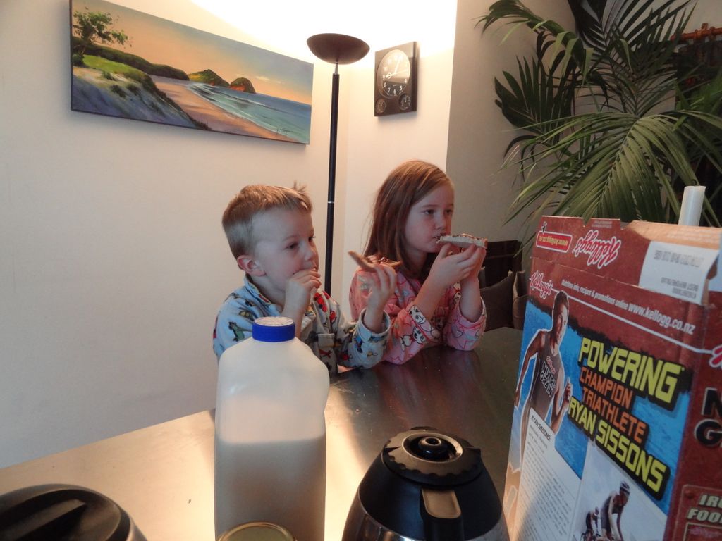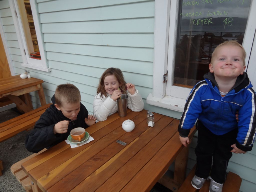 46. Jono et Heidi, au premier plan. A la table derrière, les enfants