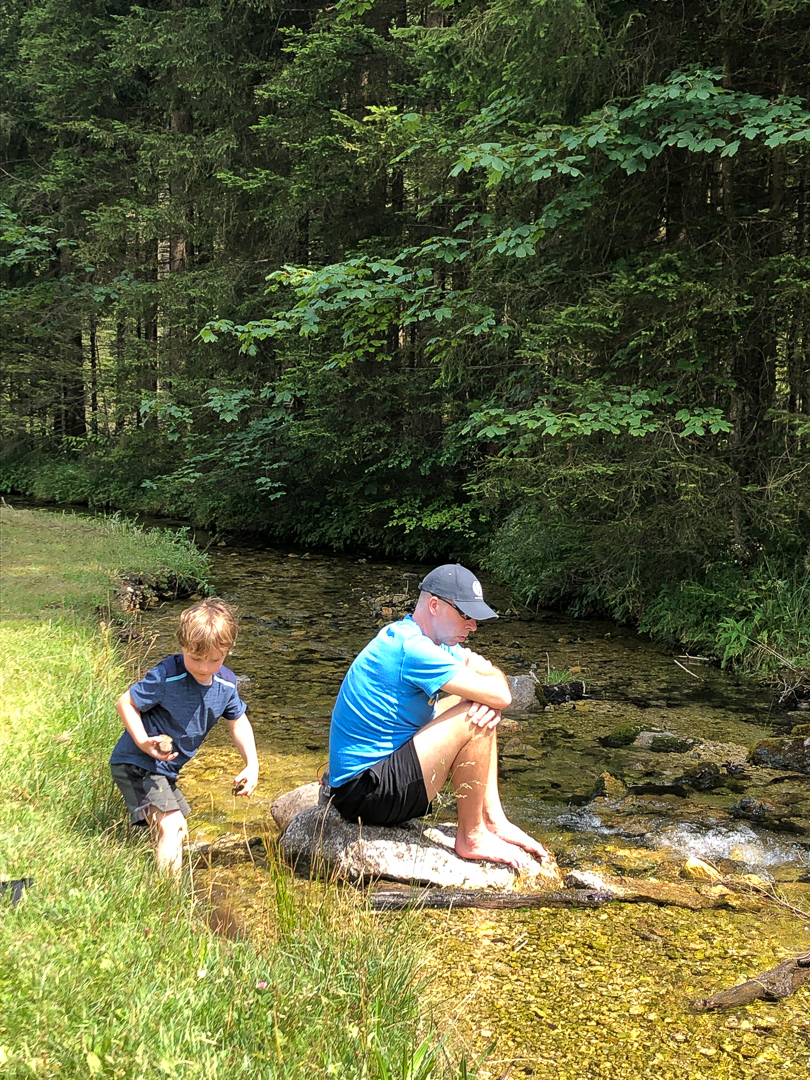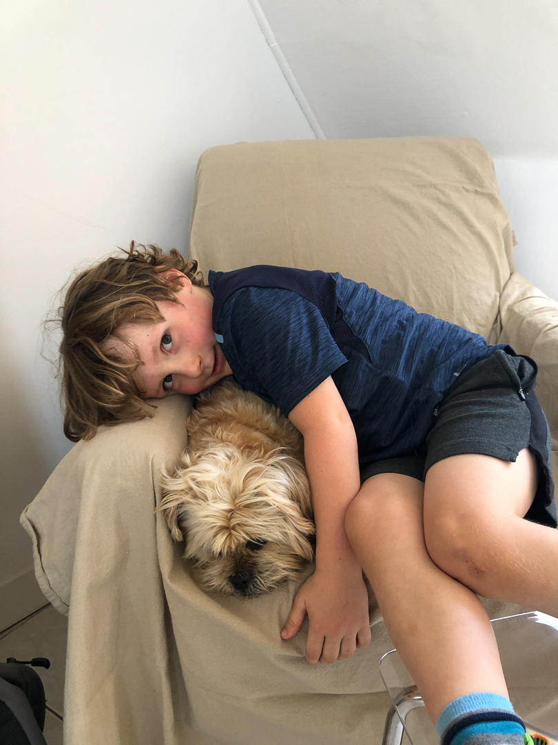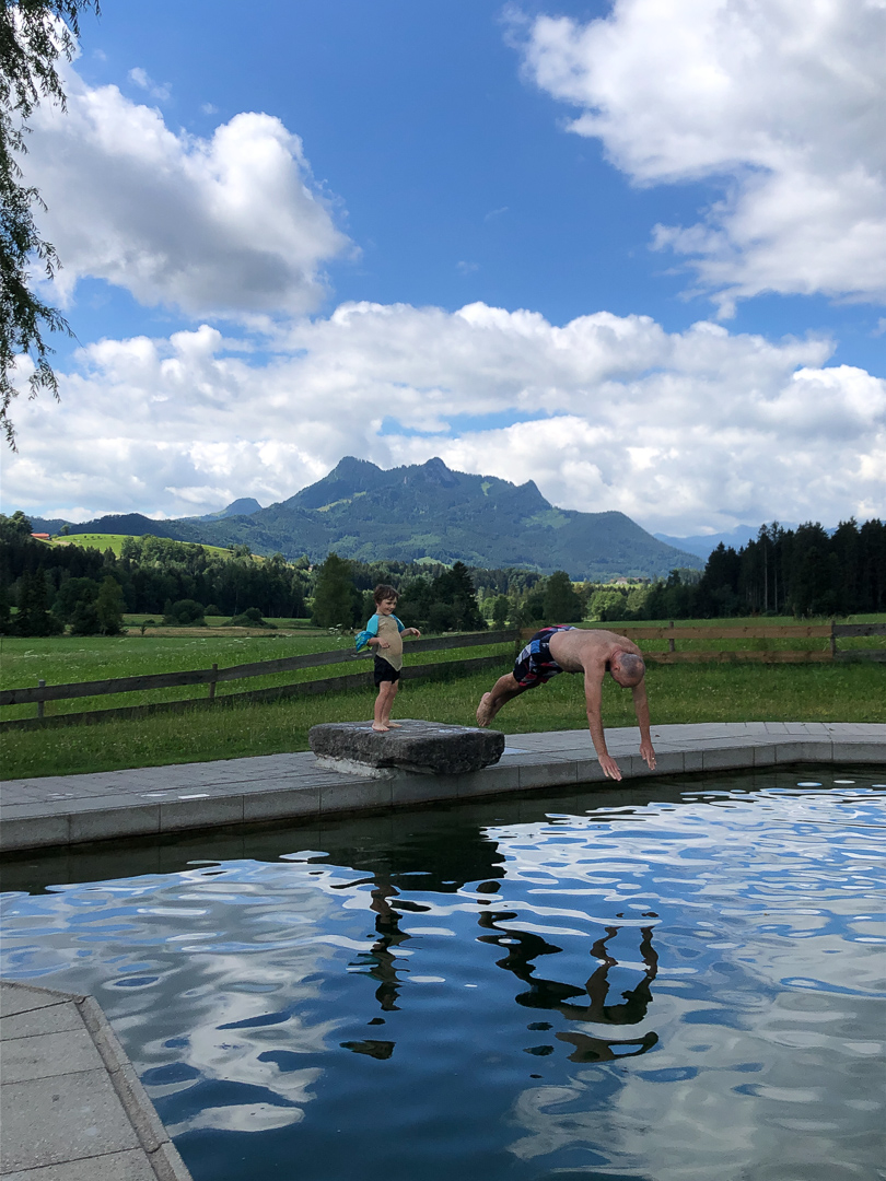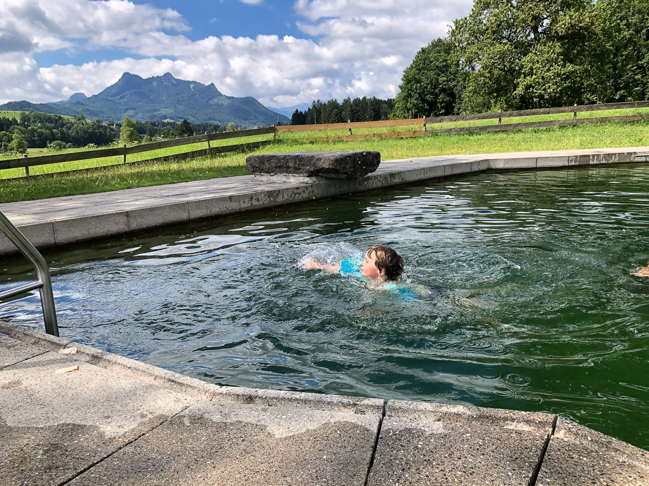 196. Cosmo a decide qu'il sauterait dans l'eau (ou il n'a pas pied) sans ses brassards. C'est donc en ce jour de Juillet 2022 qu'il sait nager!