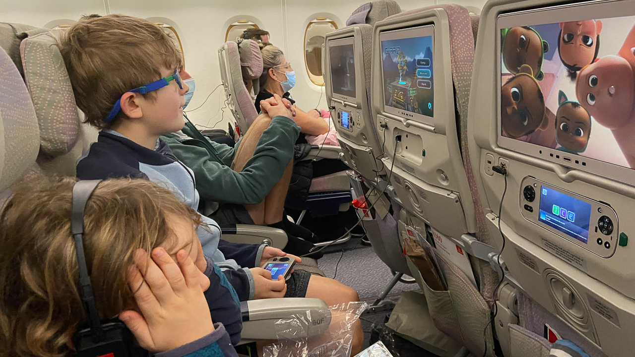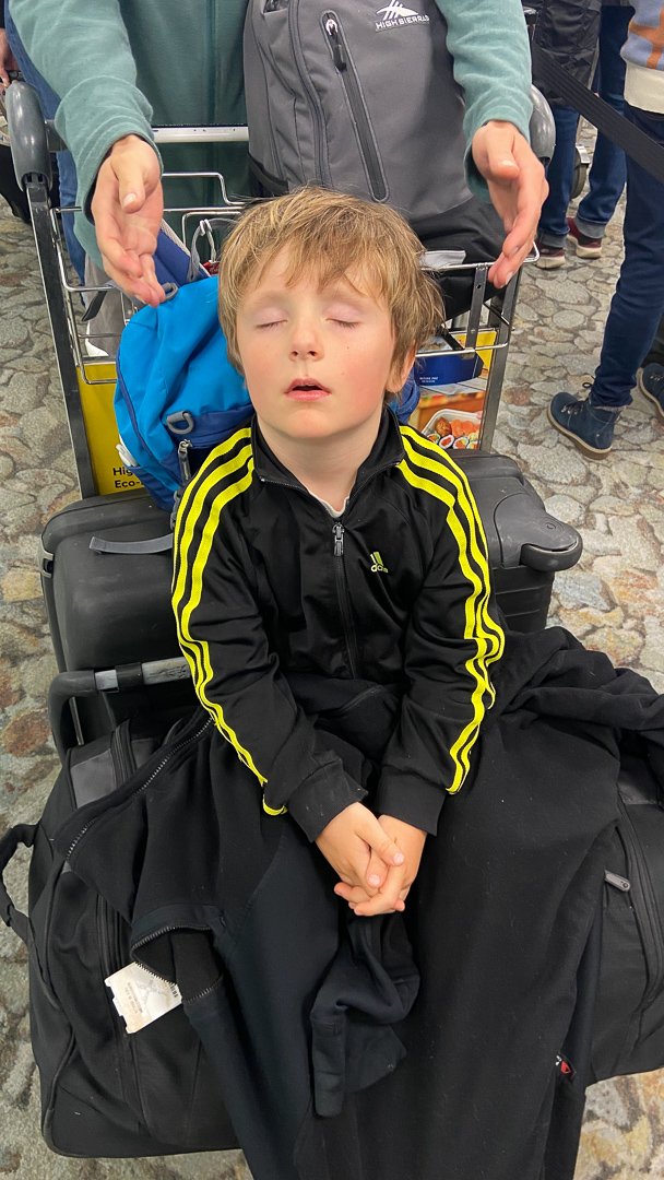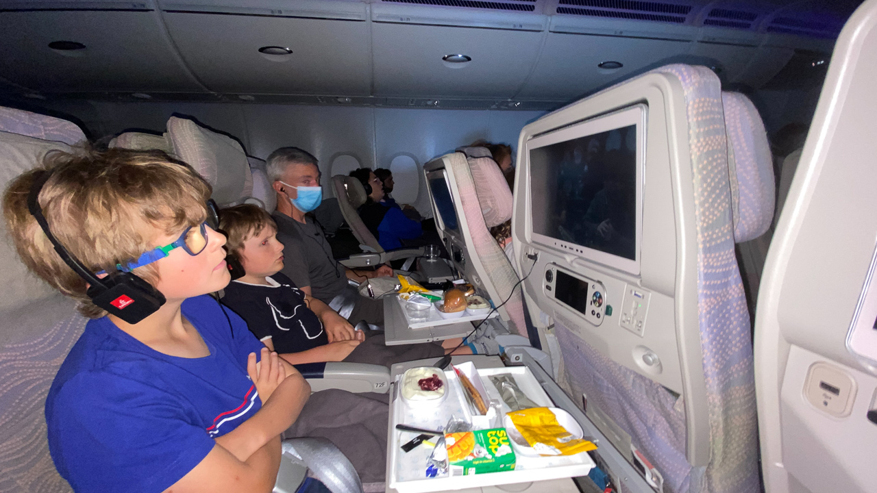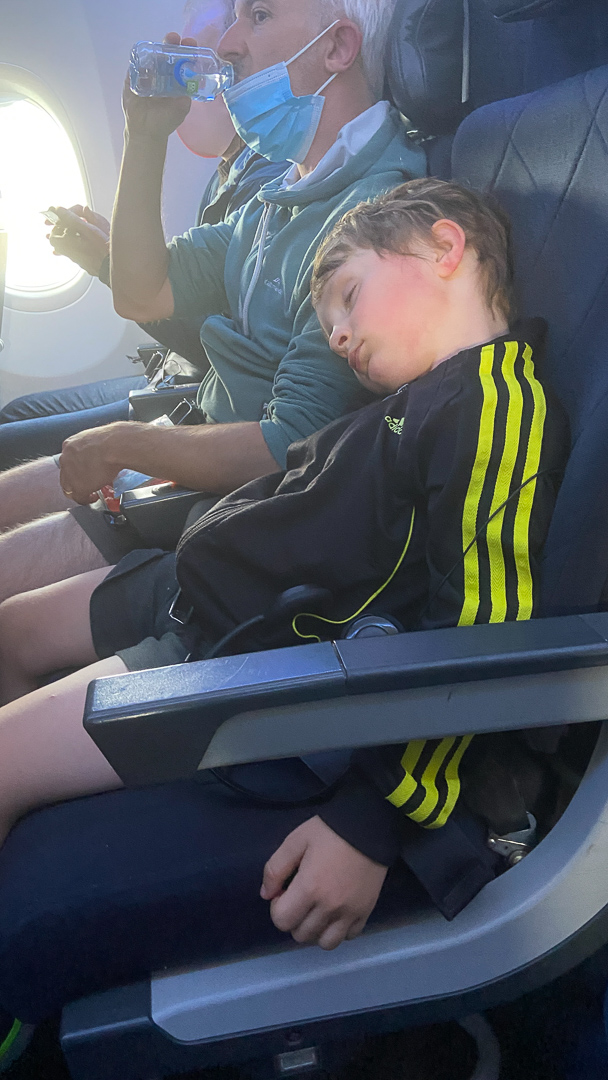 239. Cosmo a refuse de dormir depuis Dubai. Grand classique, il finit par sombrer, 10 minutes avant que l'avion ne touche la piste, a Wellington
