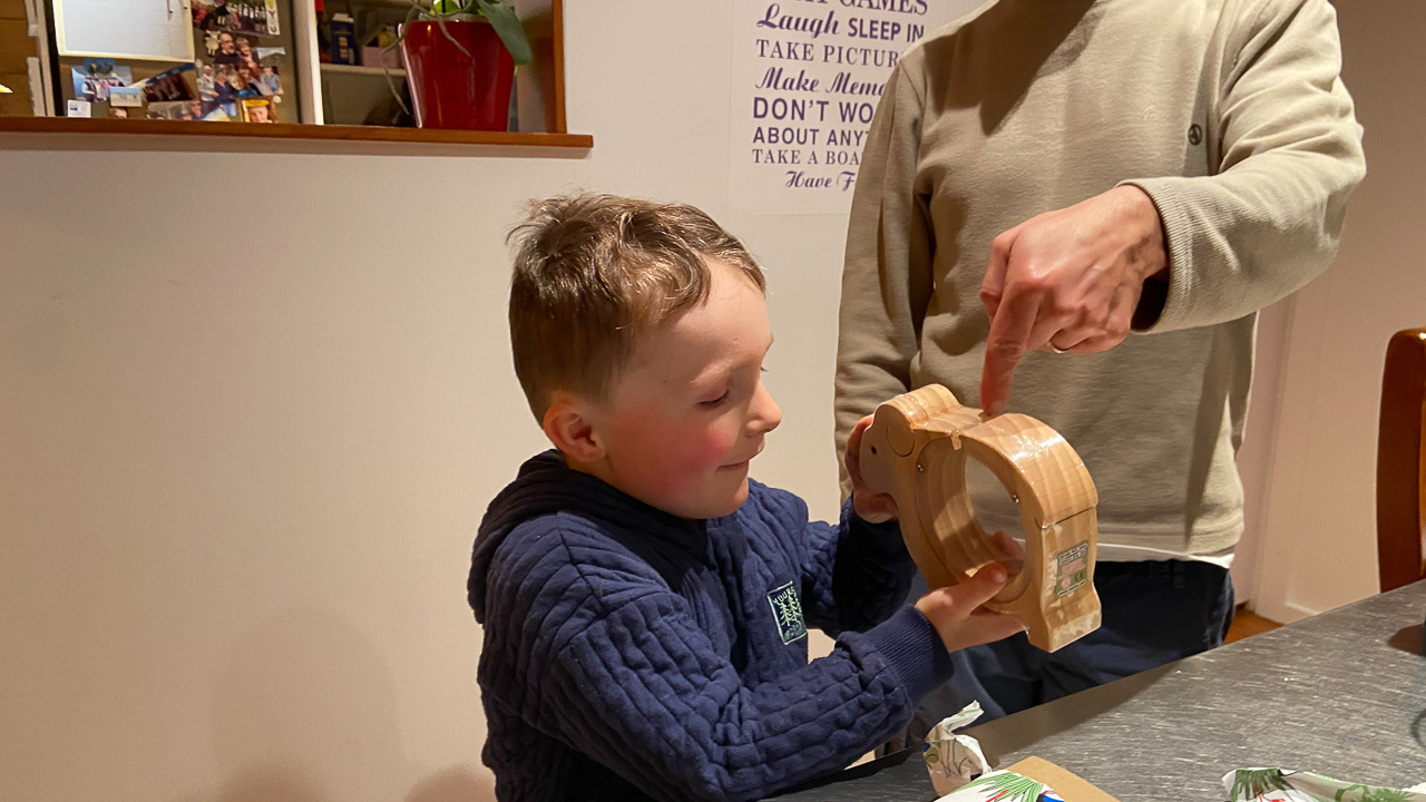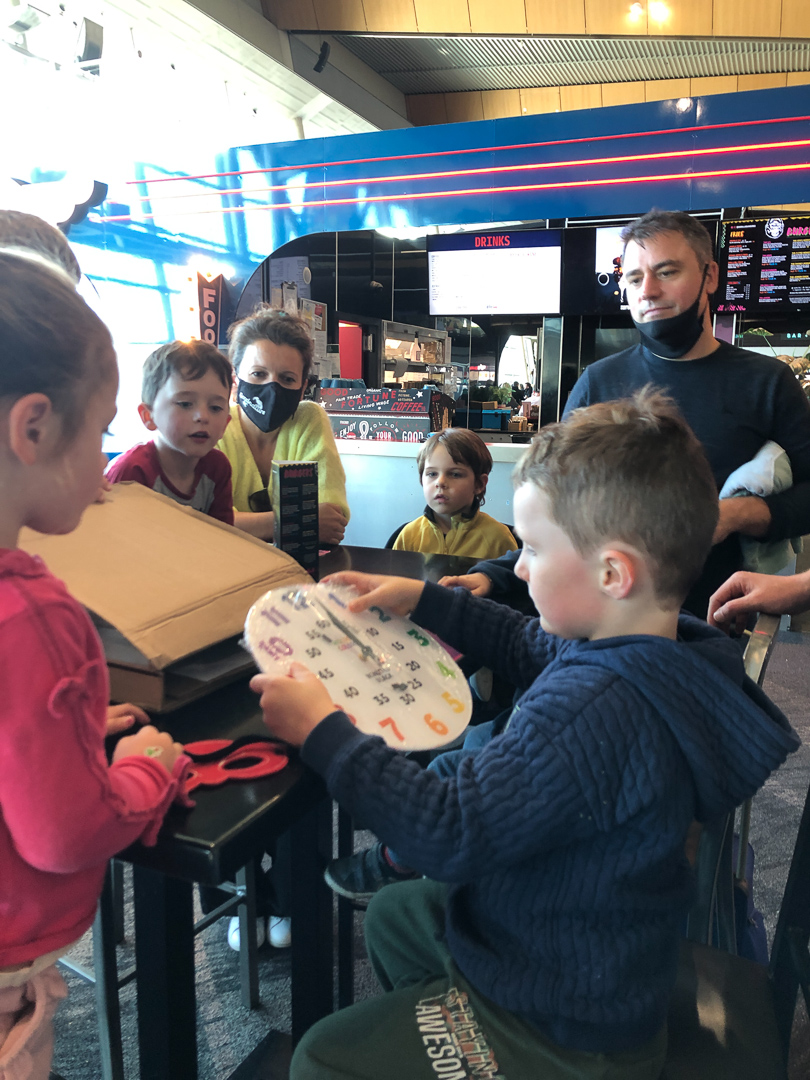 46. L'horloge est arrivee pile a l'heure! Elle a ete offerte par les taties et les tontons a l'aeroport, au bon moment!