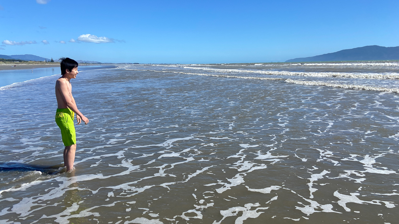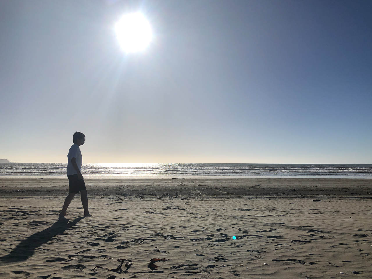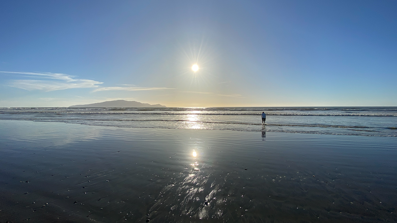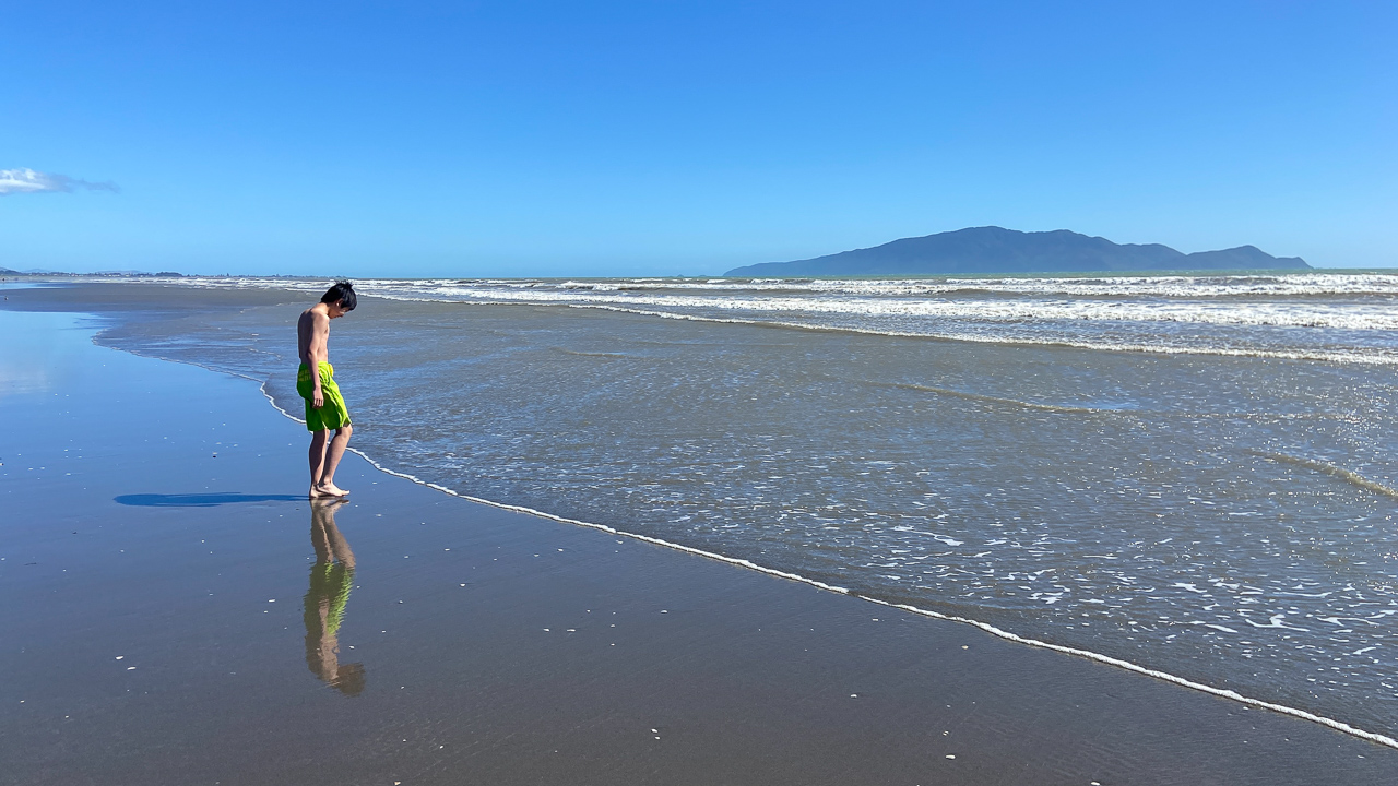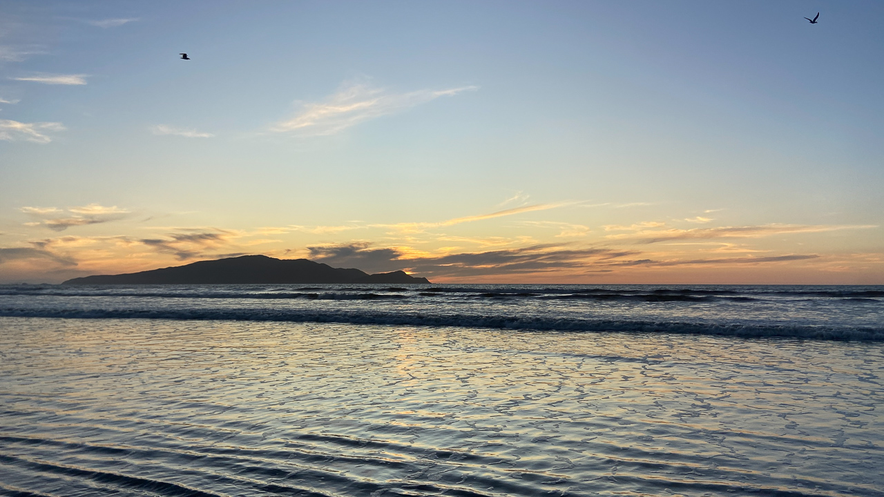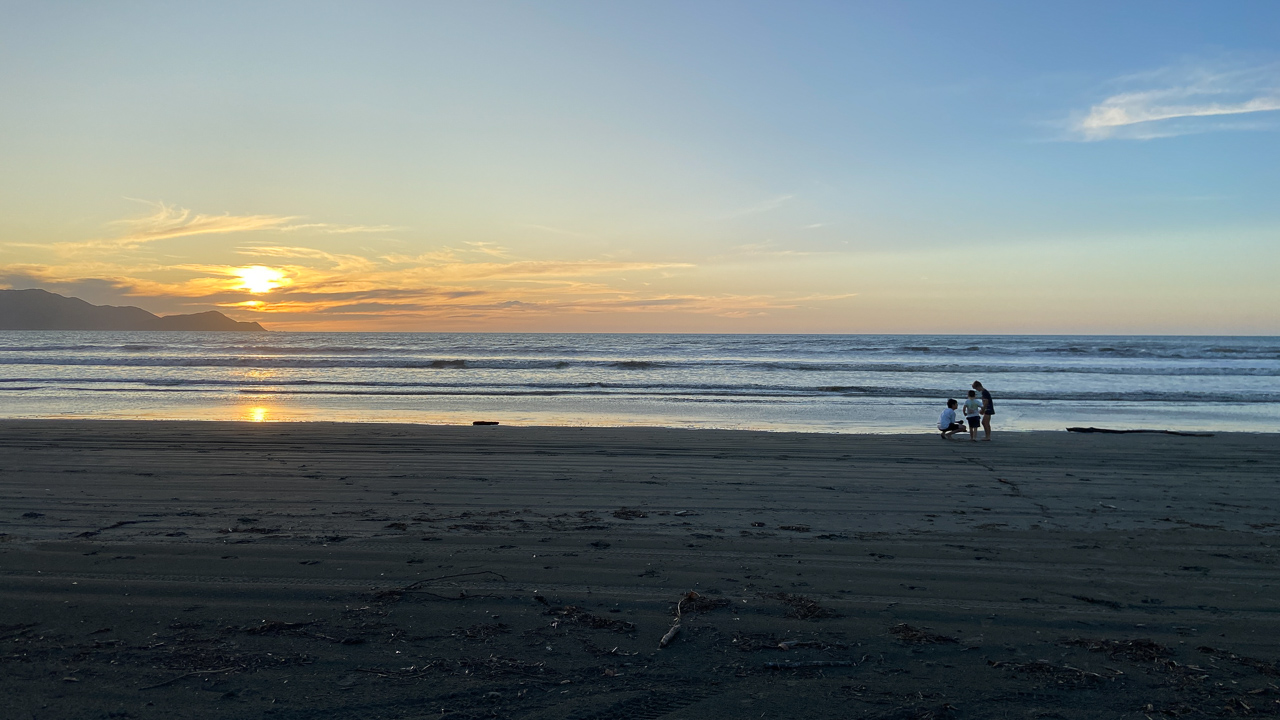 69. Ryota etait tres interesse que nous allions voir la mer, alors nous sommes alles a Peka Peka assister au coucher de soleil.