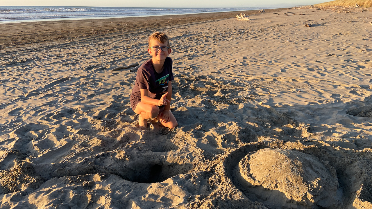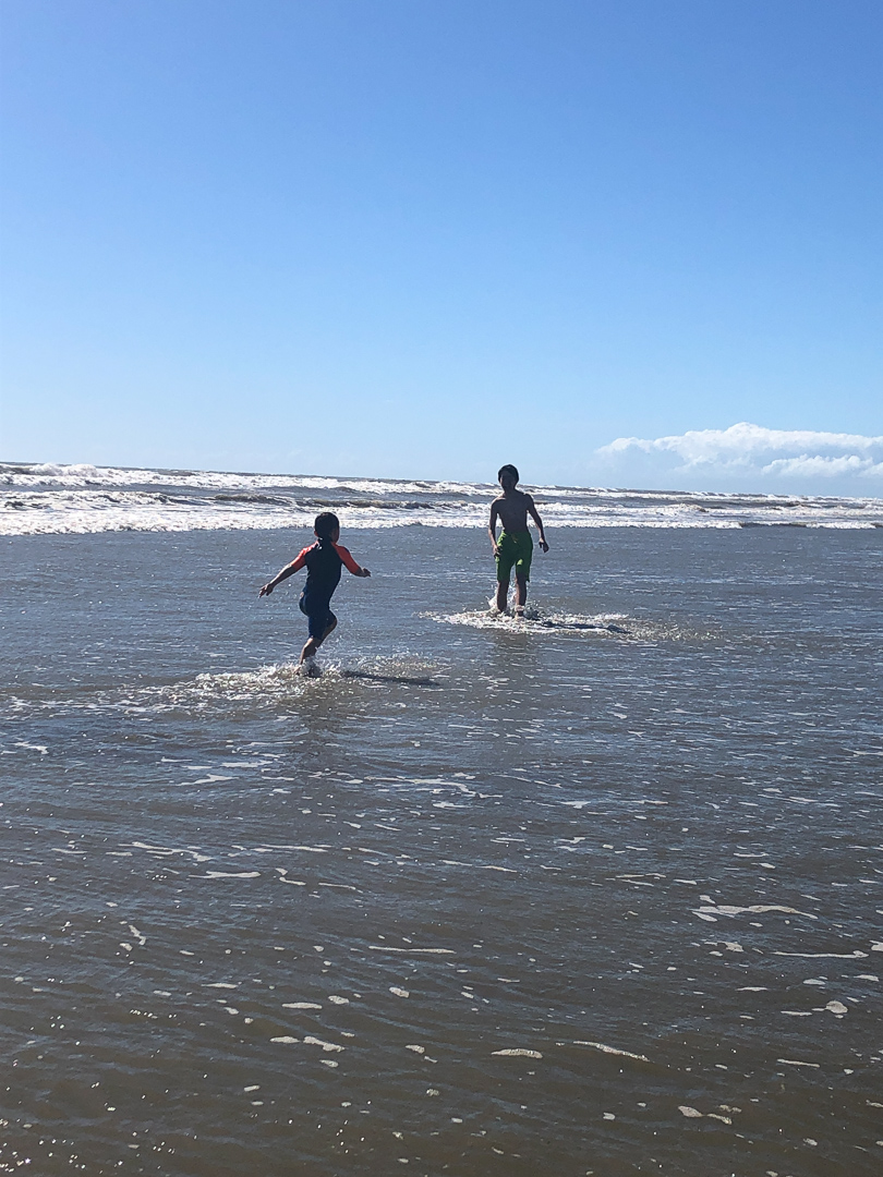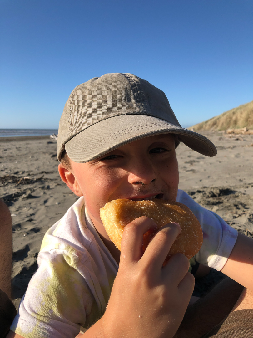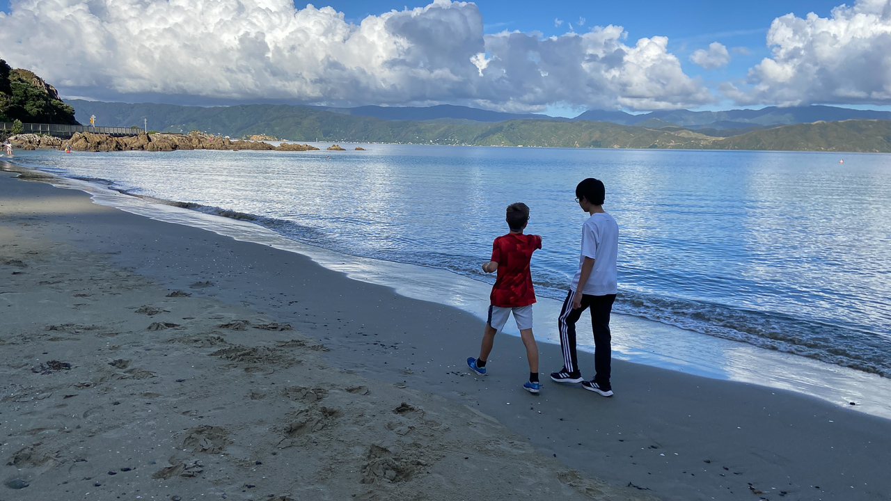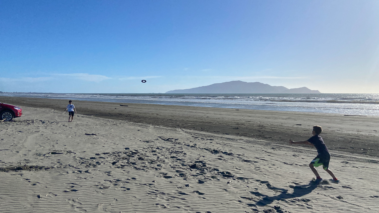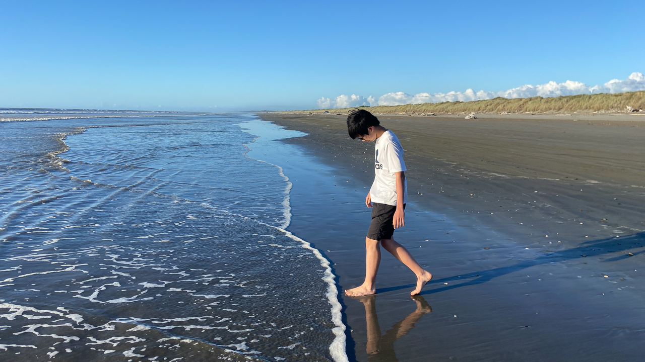 69. Ryota etait tres interesse que nous allions voir la mer, alors nous sommes alles a Peka Peka assister au coucher de soleil.