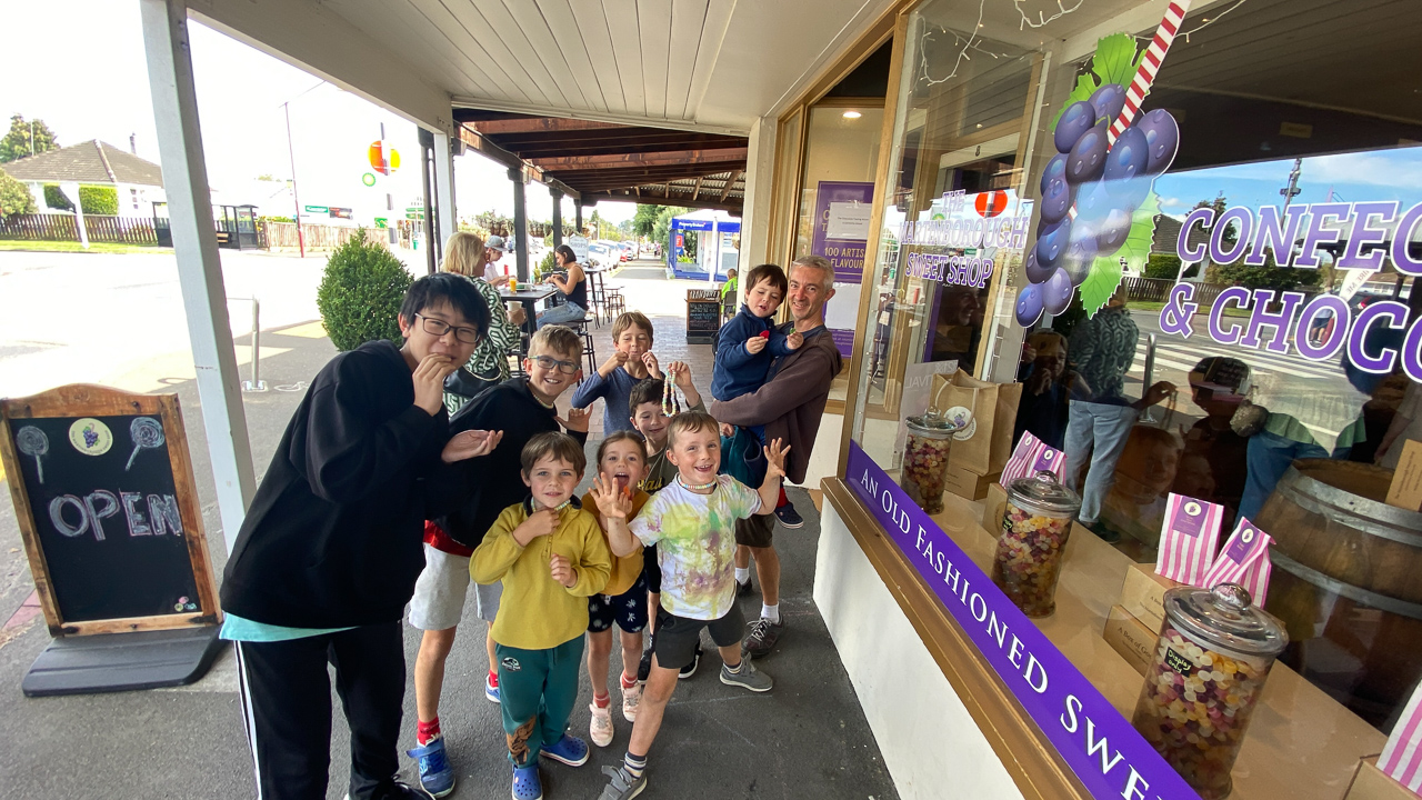 49. Ces huit enfants s'appretent a rentrer dans un magasin de bonbons!