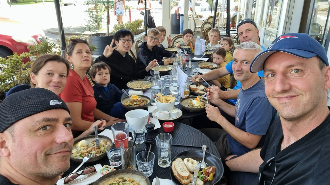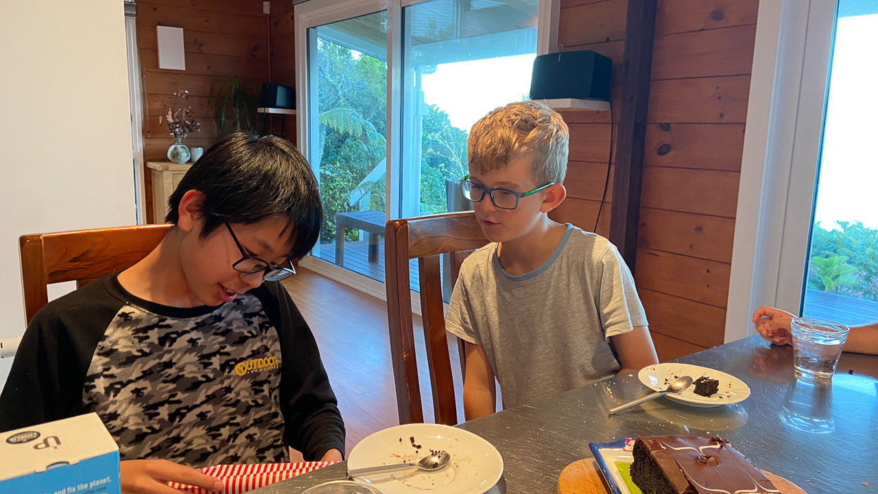Quand EBIS a contacte les parents d'eleves a la recherche de familles d'acceuil pour des etudiants Japonais, il n'etait pas acquis, a la maison que nous nous porterions volontaires. Mais nous avons pris une grosse inspiration pour finir un vendredi soir a EBIS afin d'y faire la connaissance de Ryota. Celui ci allait habiter chez nous et accompagner Adan a l'ecole pendant 15 jours. Il aurait une experience Franco-kiwi, et un programme charge, aussi bien a l'ecole que sur les weekends (car c'est un peu comme ca que fonctionne notre famille!!). Certes, la logistique supplementaire etait reelle, et il a fallut faire de la place. Mais le consensus unanime, au terme du sejour de Ryota, etait que cette experience avait vraiment ete geniale de tous les points de vue. Malgre les differences d'age, de culture, et la barriere du langage, nous avons appris a apprecier ce jeune homme qui, a 15 ans, a pris son courage a deux mains pour decouvrir un pays lointain. Autant dire qu'au matin de son depart, tout le monde etait un peu triste de lui dire au revoir.